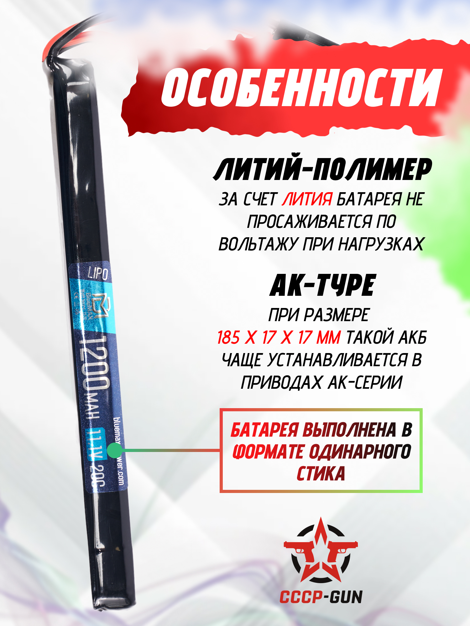 Аккумулятор BlueMax Li-Po 7.4V 1200mah 20C Stick (13.3x21x128 мм, G36, М-серия, Мини-Тамия)