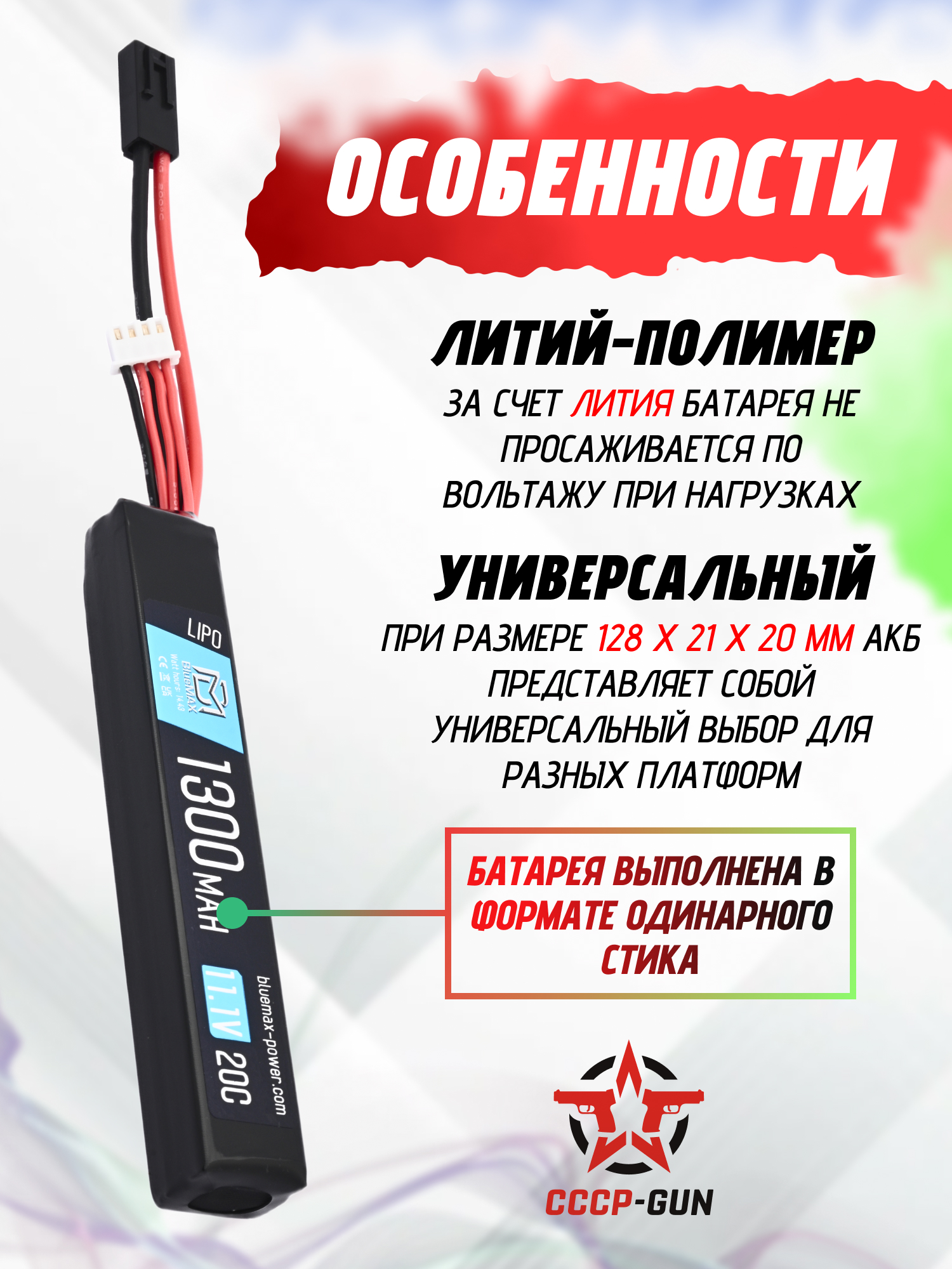 Аккумулятор BlueMax Li-Po 7.4V 1200mah 20C Stick (13.3x21x128 мм, G36, М-серия, Мини-Тамия)