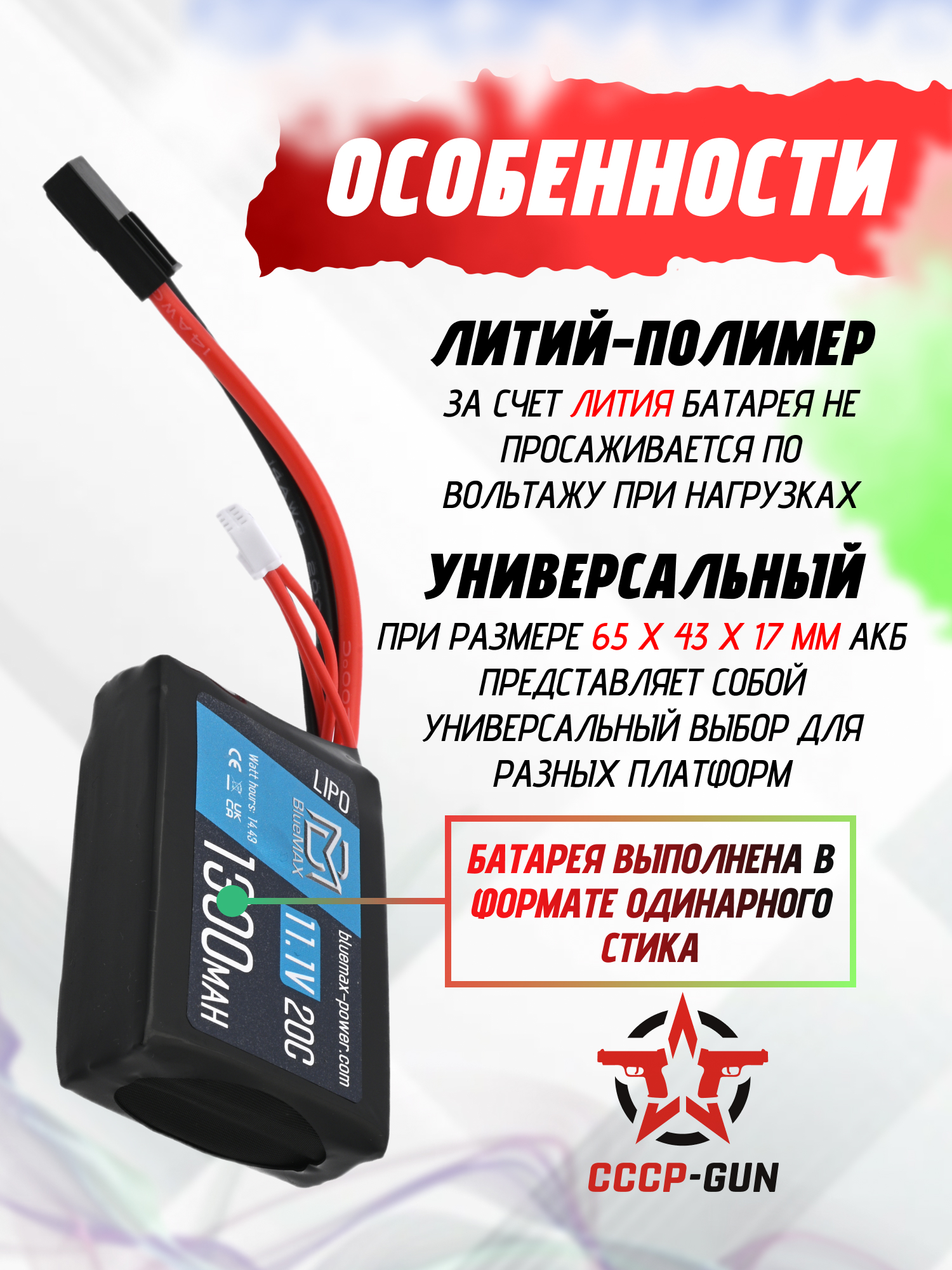 Аккумулятор BlueMax Li-Po 7.4V 1200mah 20C Stick (13.3x21x128 мм, G36, М-серия, Мини-Тамия)