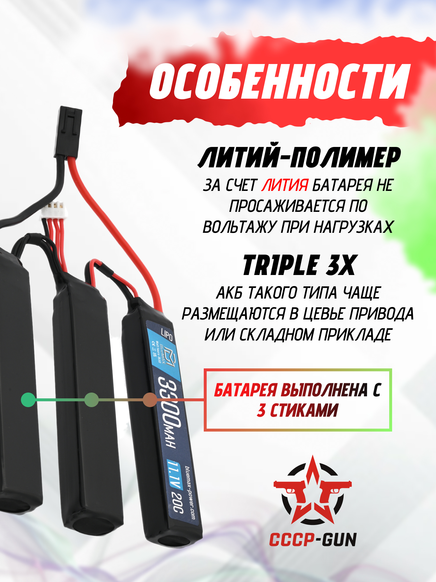 Аккумулятор BlueMax Li-Po 11.1V 1100mAh 20C Triple 3x (Mini Tamiya, 5.5x20x103 мм)
