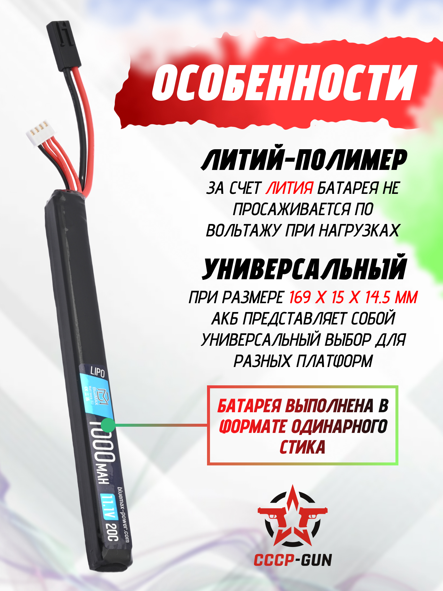 Аккумулятор BlueMax Li-Po 7.4V 1200mah 20C Stick (13.3x21x128 мм, G36, М-серия, Мини-Тамия)
