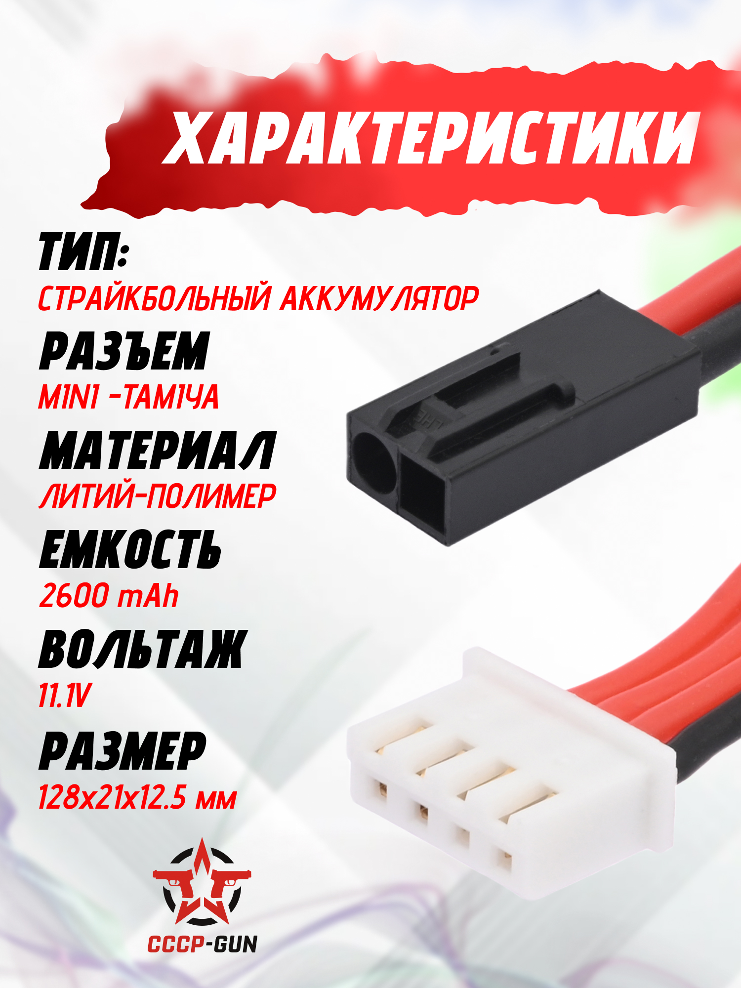Сборка основана на литий-полимерных элементах - технология Li-Po гарантирует стабильность напряжения при экстремальных нагрузках. Помимо эксплуатационных качеств, страйкбольный аккумулятор 11.1 отличается суммарной энергоемкостью до 2600 мАч - на практике это привносит более продолжительные игровые сессии без необходимости замены источника энергии.