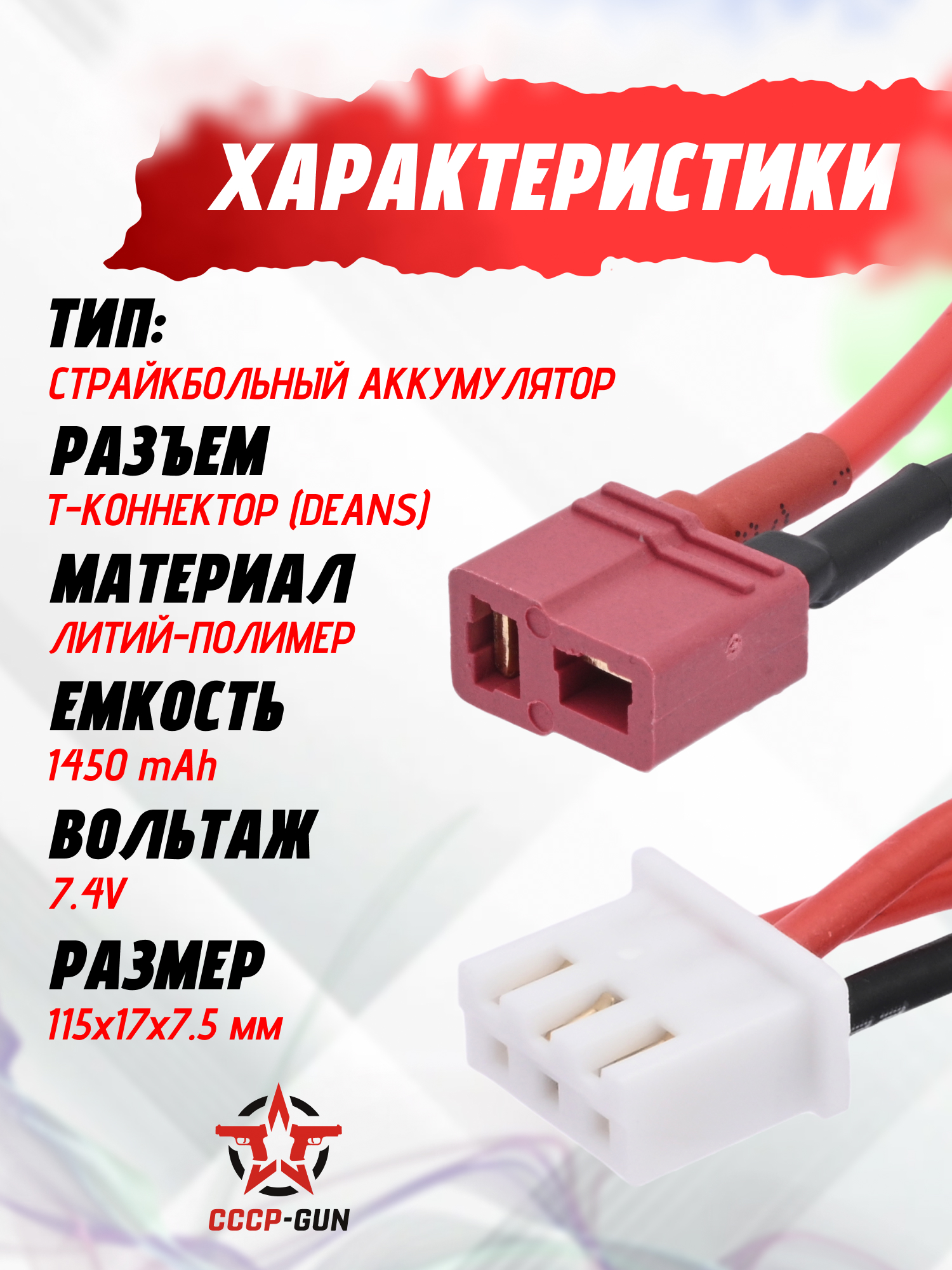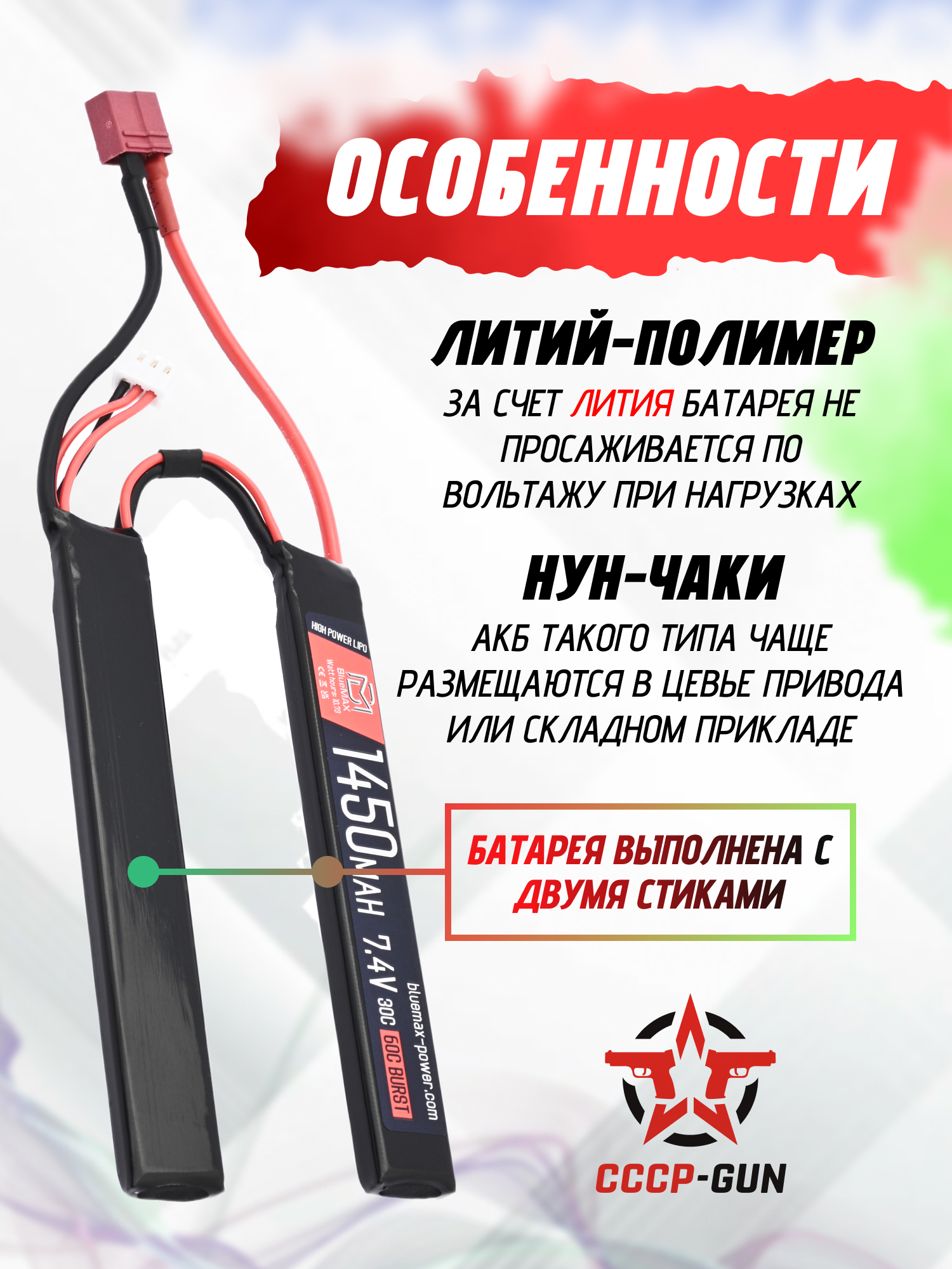 Аккумулятор BlueMAX Li-Po 7.4V 1450mAh 30C Nunchuck 2x (Mini Tamiya, 7.5x17x115 мм)