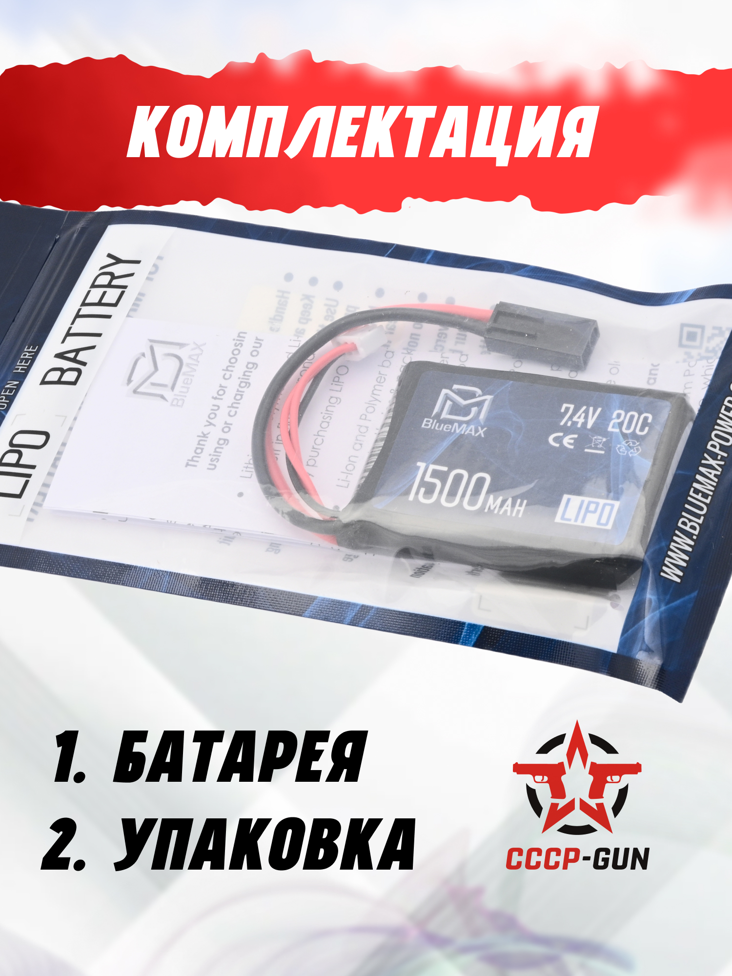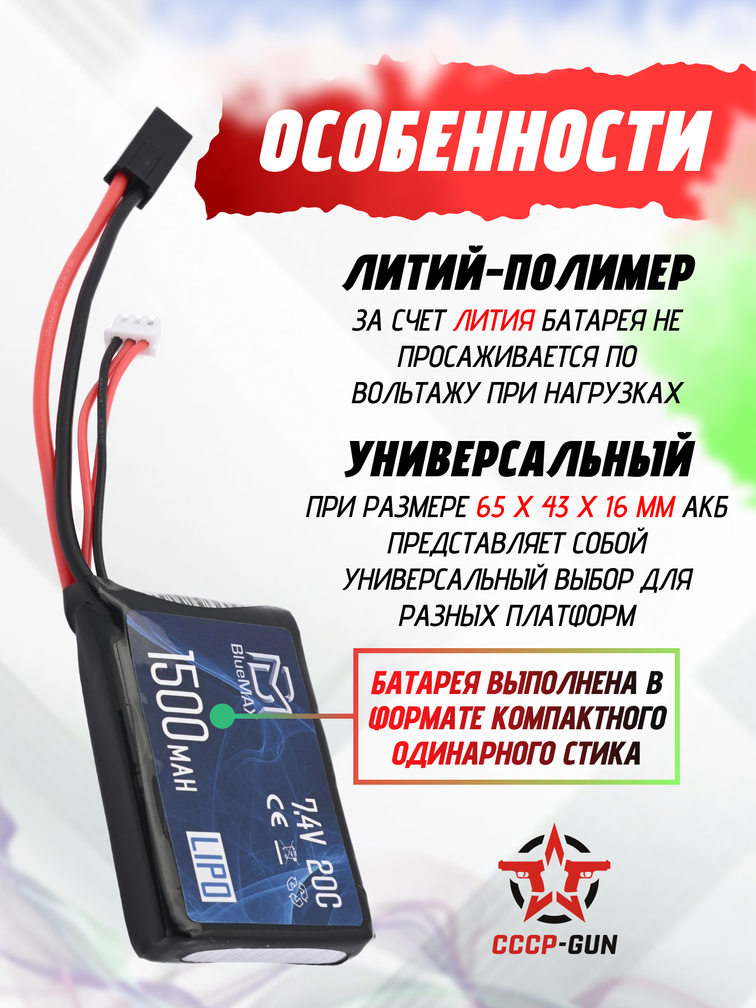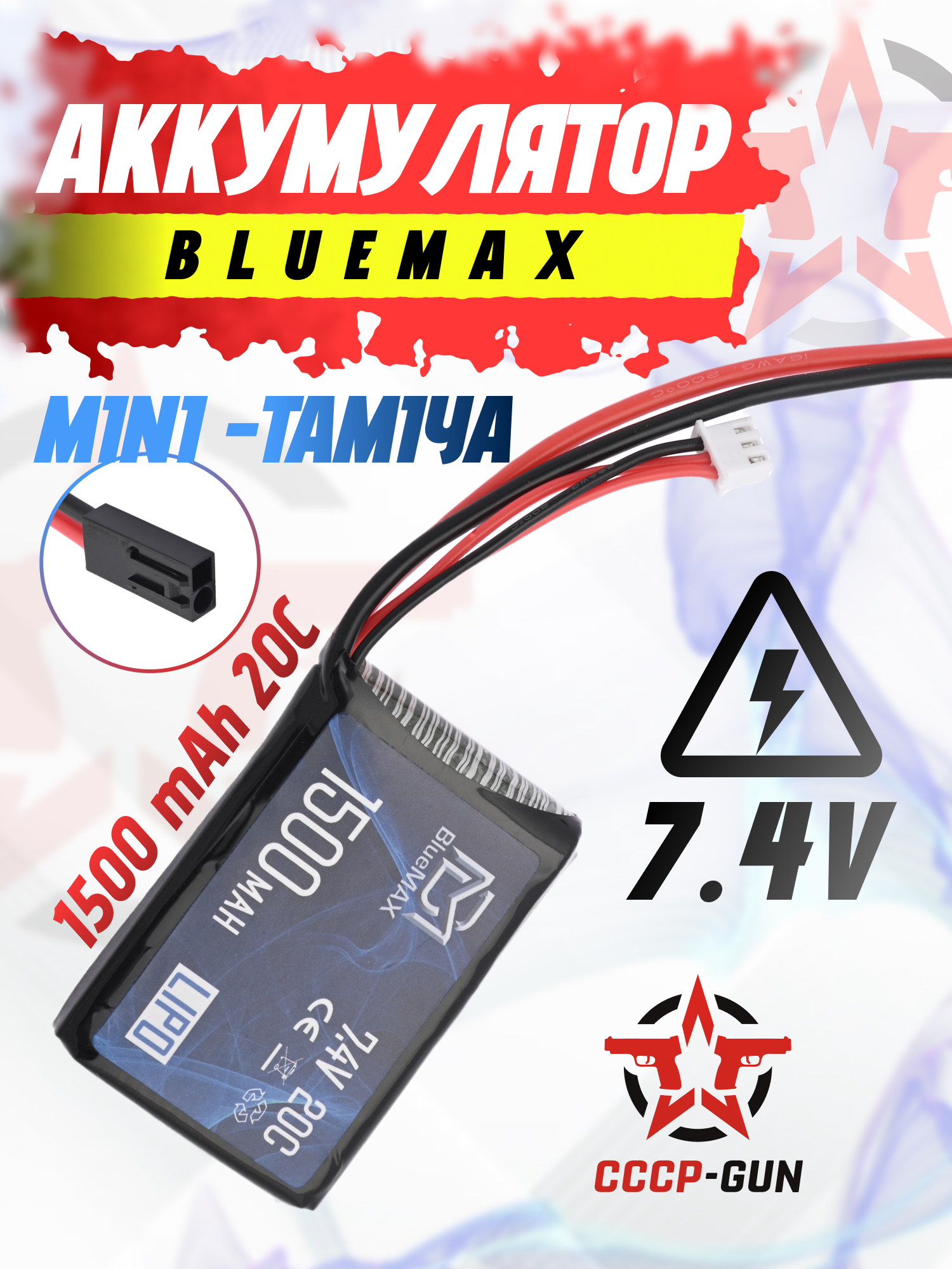 Аккумулятор BlueMax Li-Po 7.4V 1200mah 20C Stick (13.3x21x128 мм, G36, М-серия, Мини-Тамия)