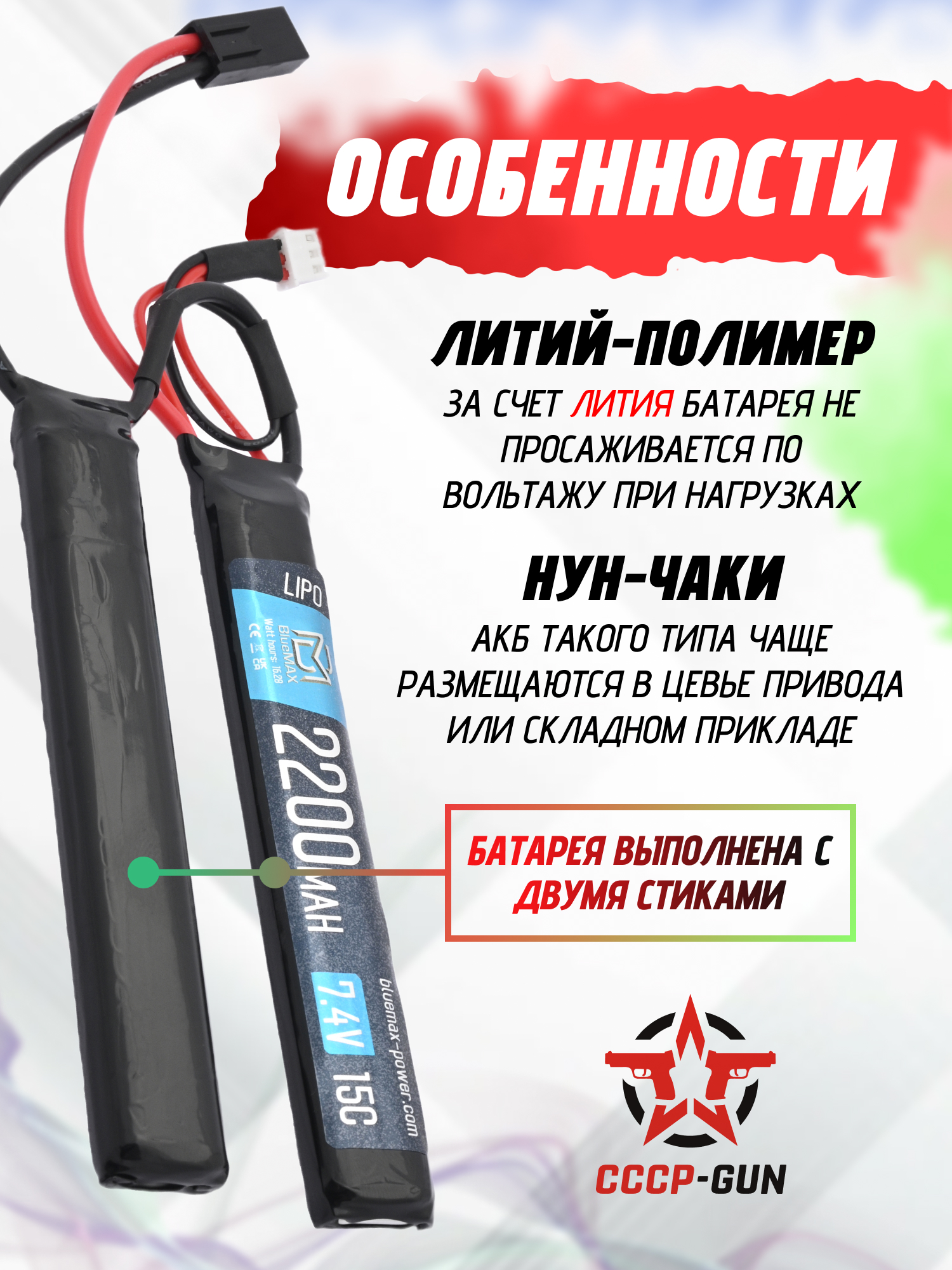 Аккумулятор BlueMax Li-Po 7.4V 1100mAh 20C Nunchuck 2x (5.2x21x102 мм)