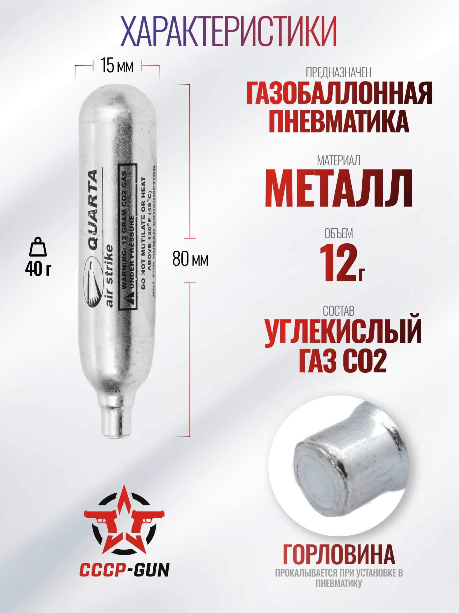| Объем (масса вещества) | 12 грамм сжиженного газа СО2 (Углекислый газ) |