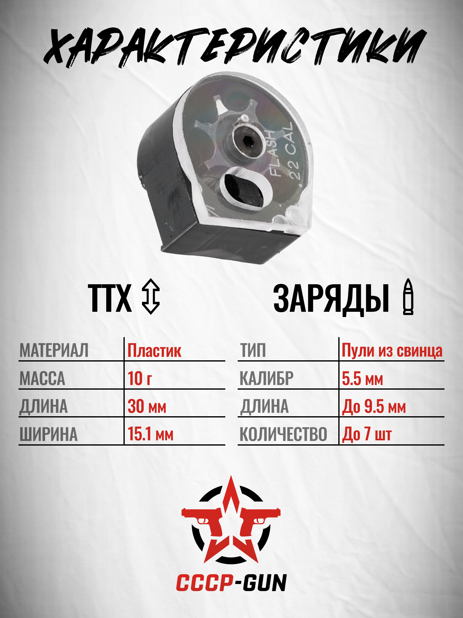 Описание барабанного магазина Agioso 5.5 мм мини (15.1 мм, 7 пуль, Hatsan Flash, Дубрава)
