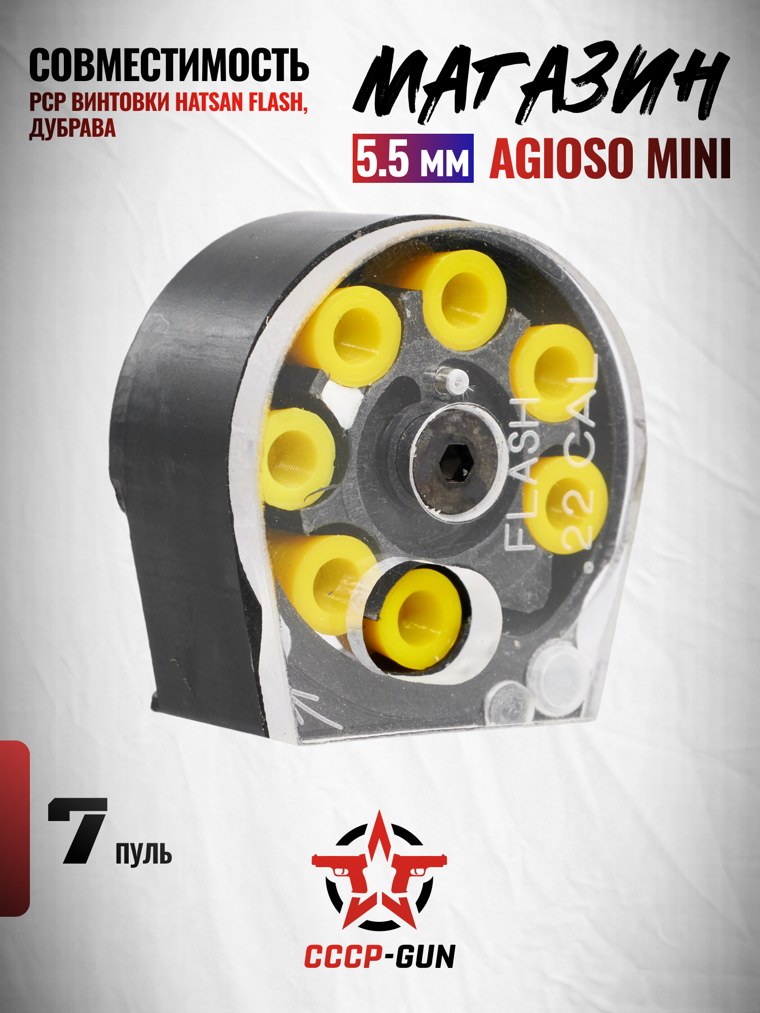 Барабанный магазин Agioso 5.5 мм мини (15.1 мм, 7 пуль, Hatsan Flash, Дубрава)