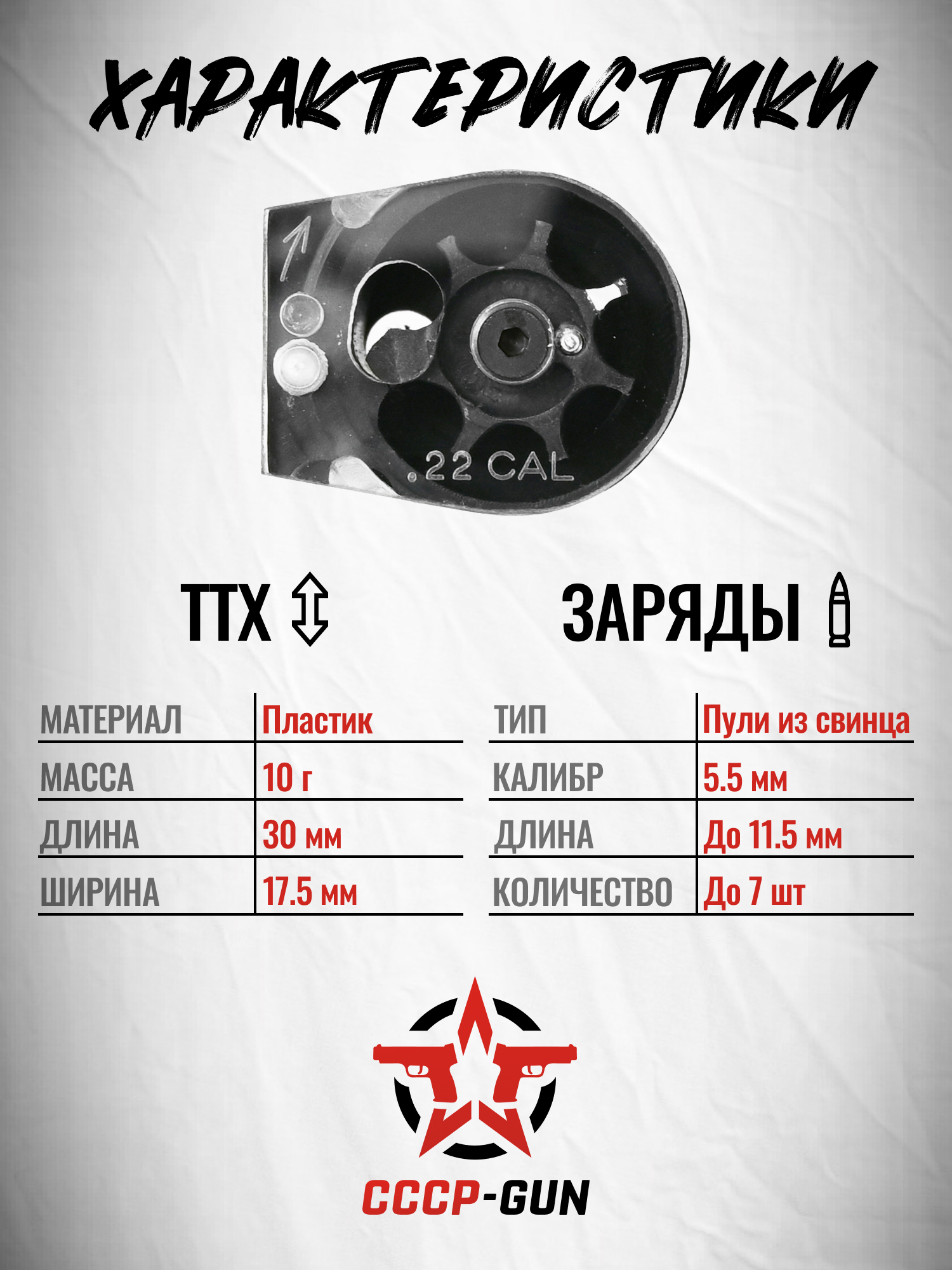 Барабанный магазин Agioso 5.5 мм мини с проточкой (17.5 мм, 7 пуль, для KrugerGun)