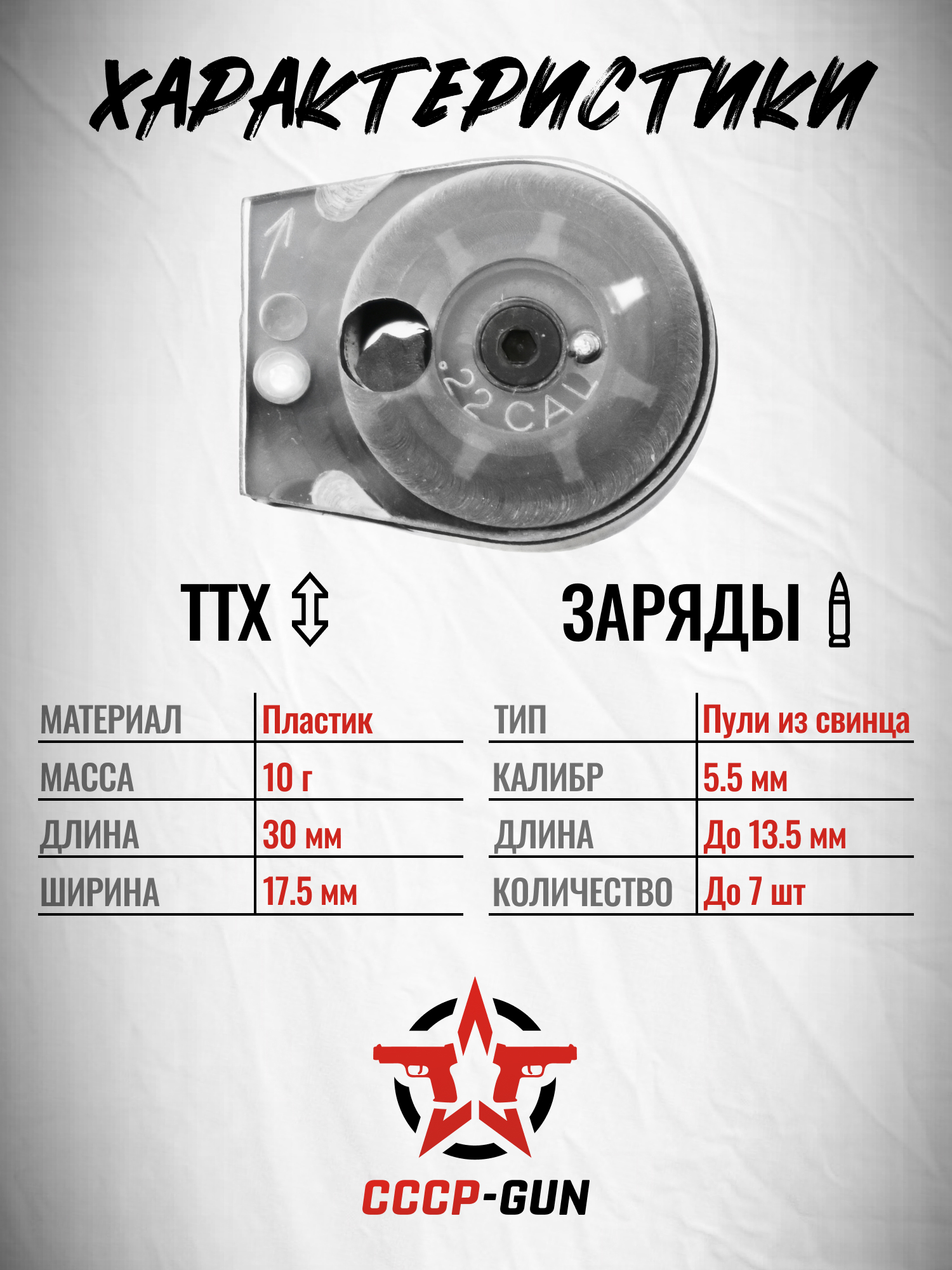 Барабанный магазин Agioso 5.5 мм мини (17.5 мм, 7 пуль, KrugerGun)