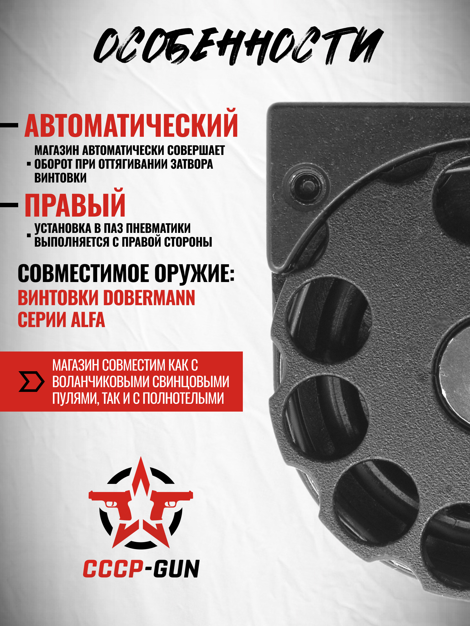 Барабанный магазин Dobermann 4.5 мм (7 мест, левый, ручной, 15 мм)