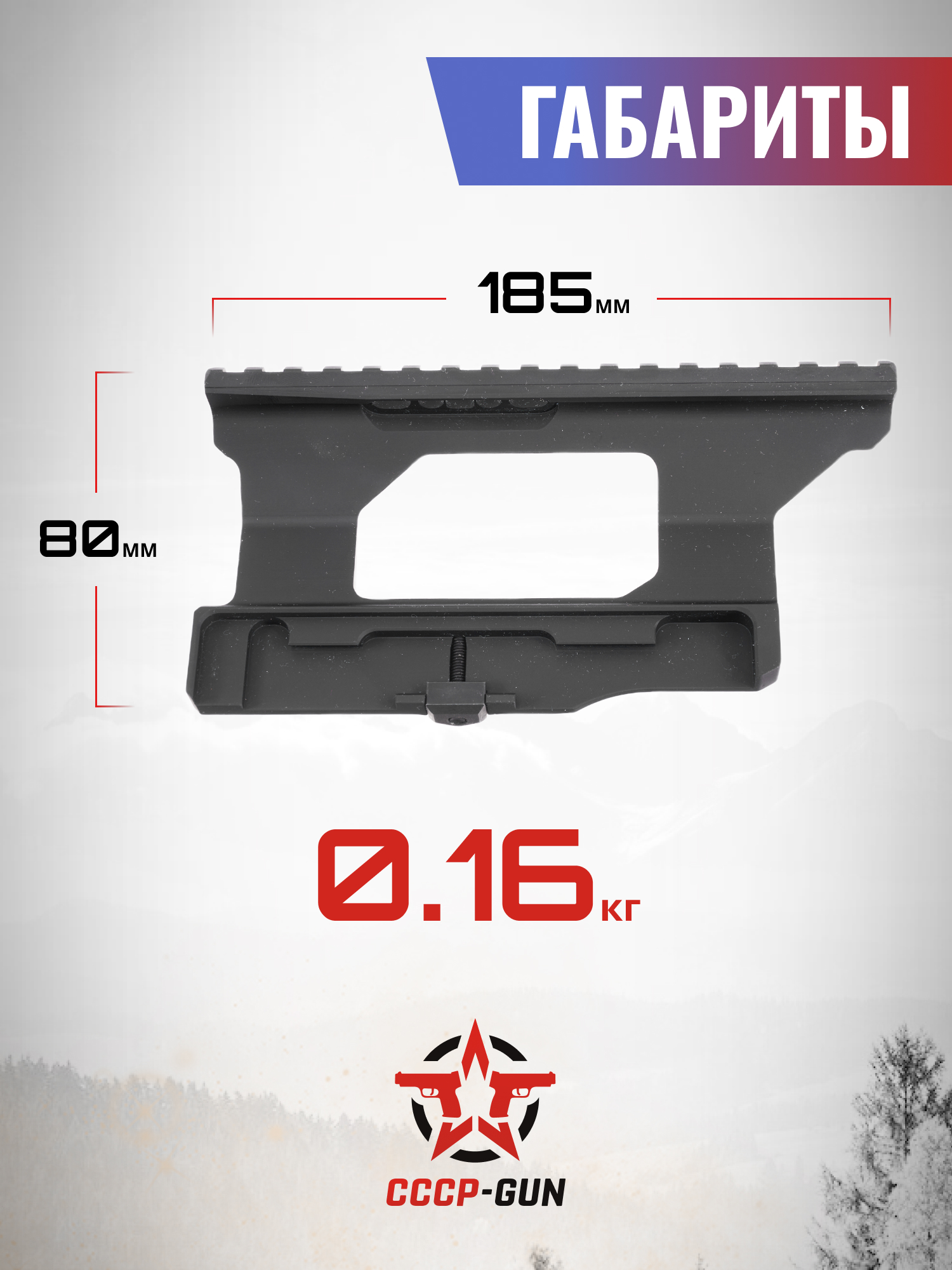 Длина кронштейна составляет 18.5 см. Заготовка обрабатывается методом фрезеровки из прочного алюминиевого сплава, далее покрывается защитным слоем, предотвращающим воздействие коррозии. Конструкция создана так, чтобы после установки сохранялся полный доступ к открытым прицельным приспособлениям. Крышка коробки ствола также снимается без необходимости в демонтаже переходника.