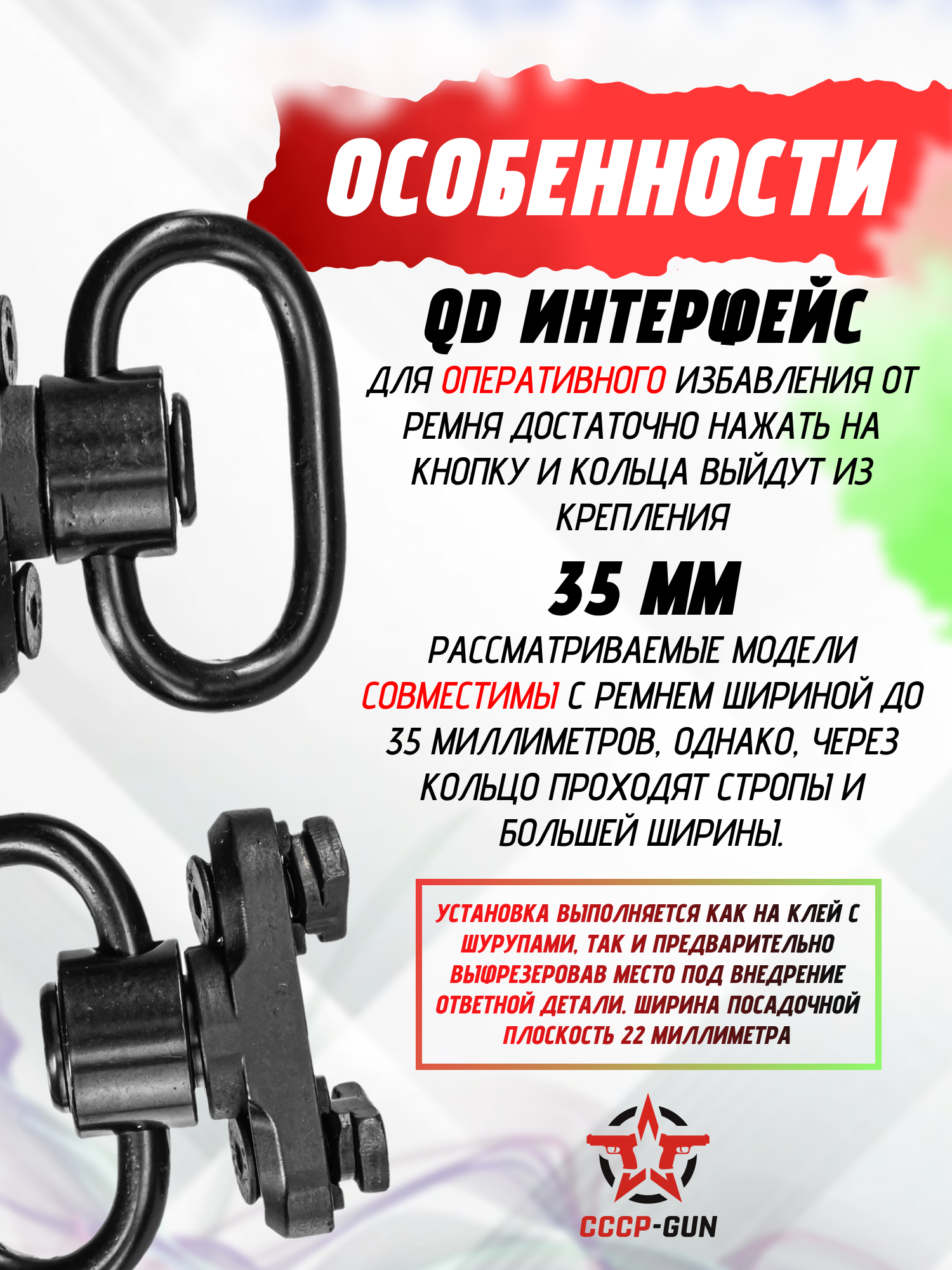 Быстросъемные антабки Patriot BH-SS06 35 мм (посадочное 22 мм)