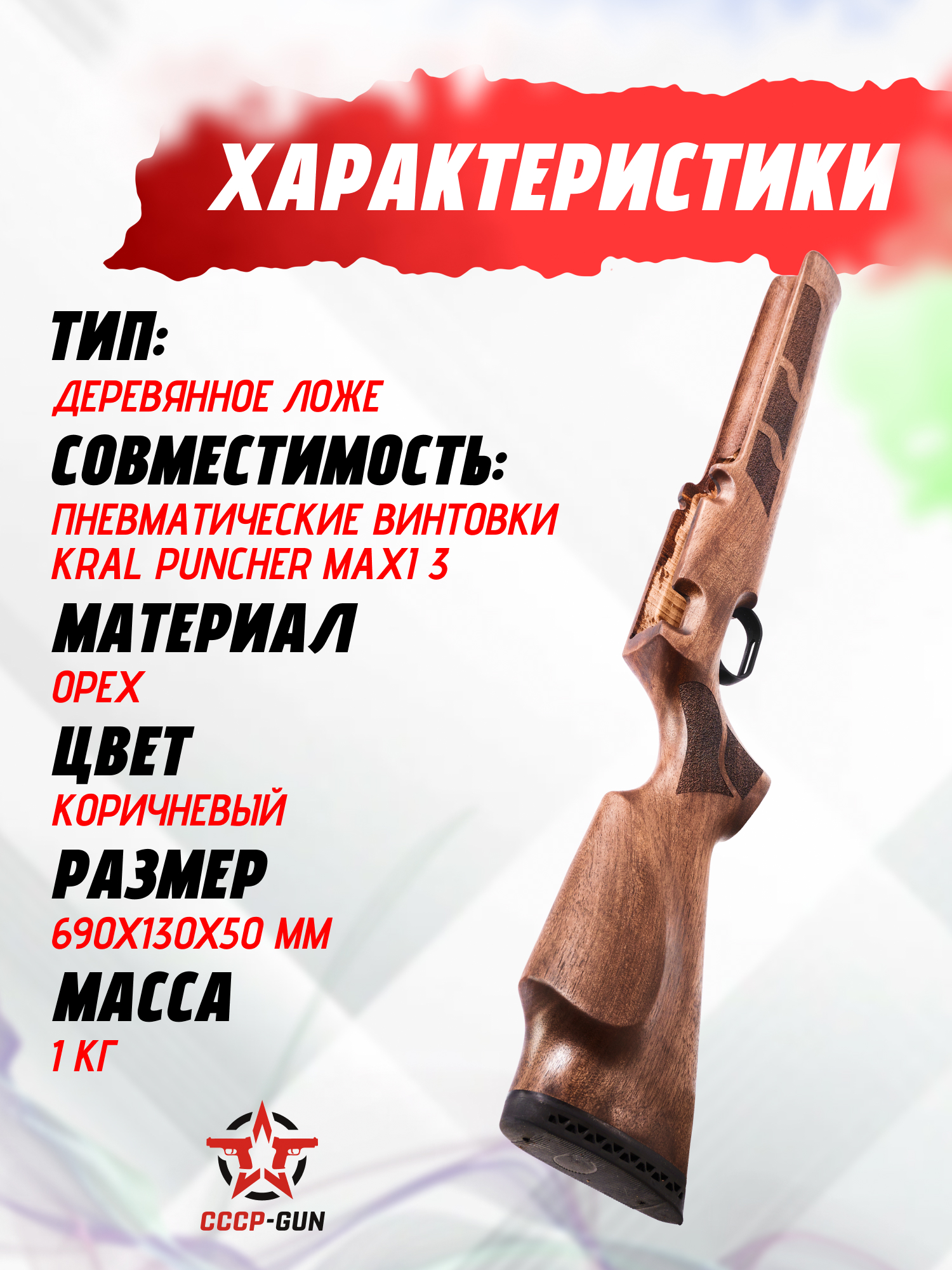 Деревянная ложа Kral Puncher Maxi 3 (в сборе, орех, CR84)