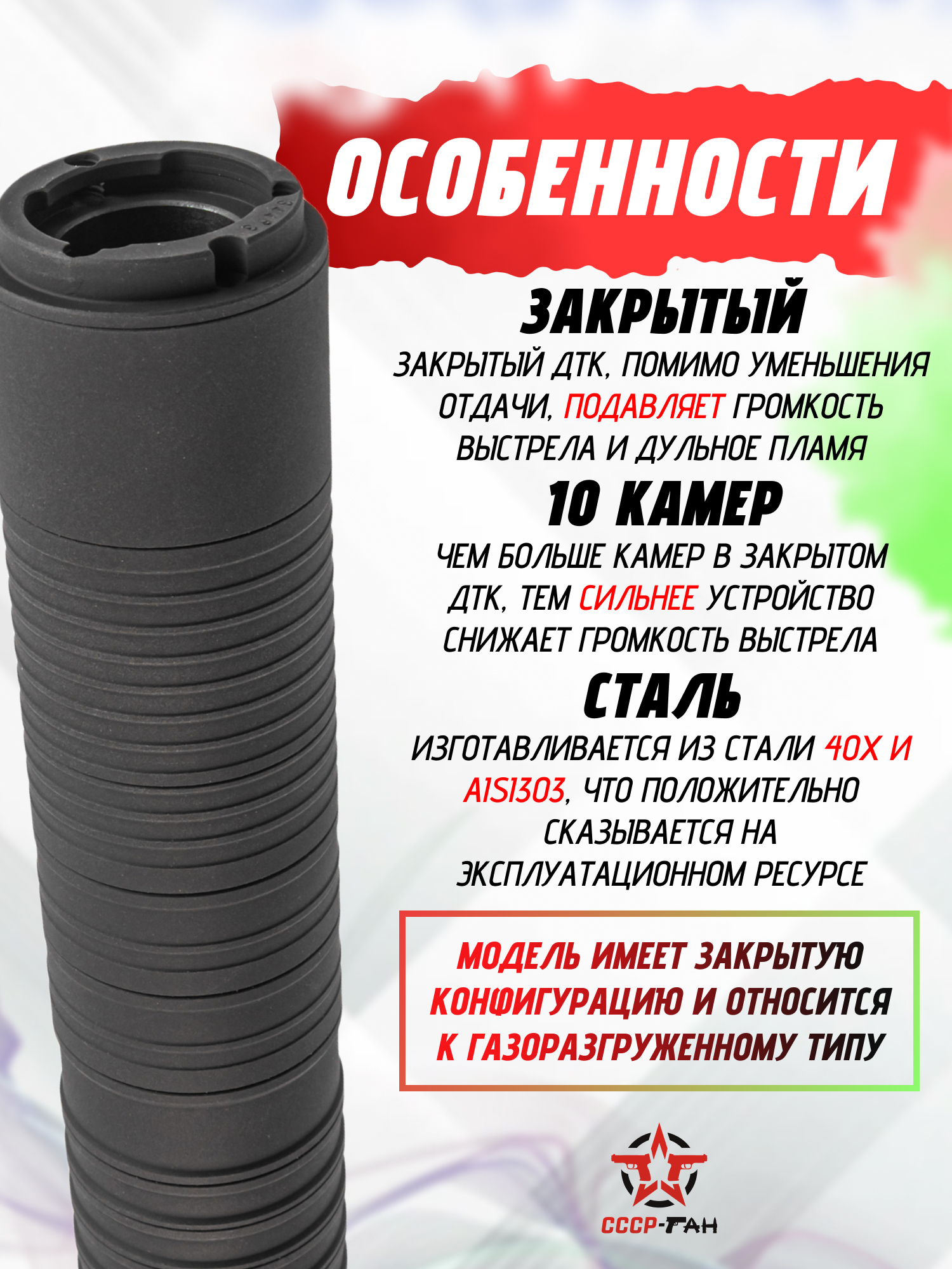 Обозреваемый ДТК разрабатывали исходя из условий, в которых работает ПКП Печенег - модель способна выдерживать продолжительную работу очередями, а общий расчетный ресурс переваливает за планку 7000 выстрелов. Изделие разборное, что позволяет провести чистку - последнее действие рекомендуется проводить после 1500 выстрелов.