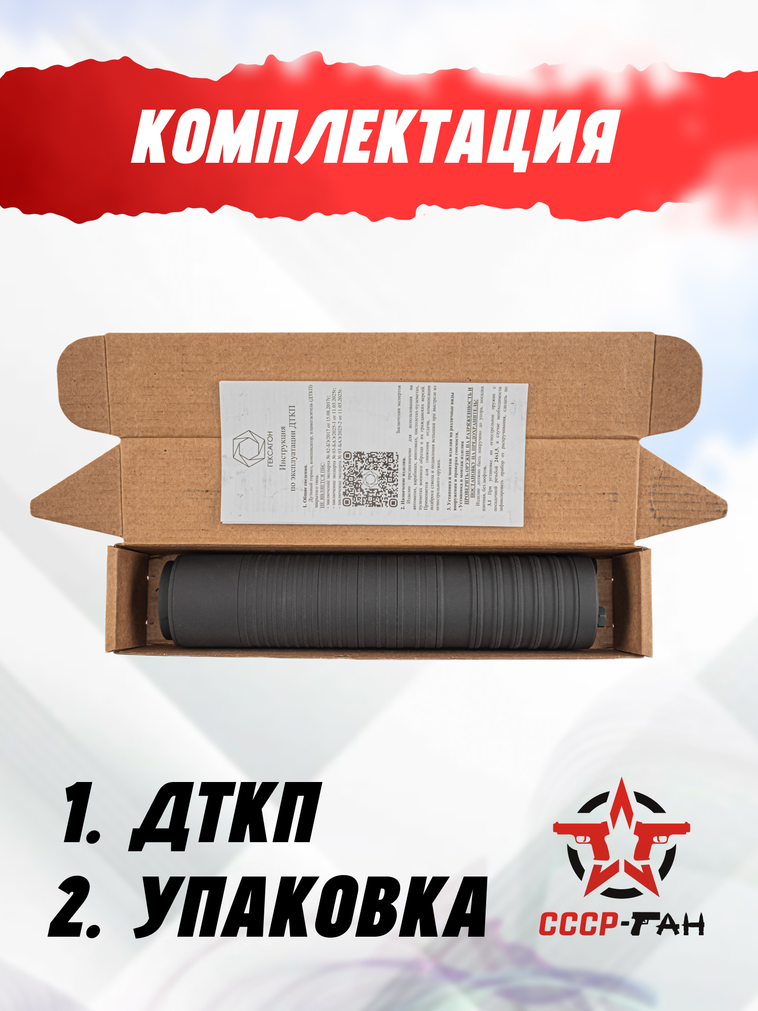 Байонетное крепление делает снятие и установку прибора оперативной. Компании Geksagon удалось сделать приспособление относительно компактным для его характеристик - длина изделия составляет 230 миллиметров. Пулепроходное отверстие имеет диаметр 12.2 мм, что исключает возможность задевания бортика ДТКП пулей.