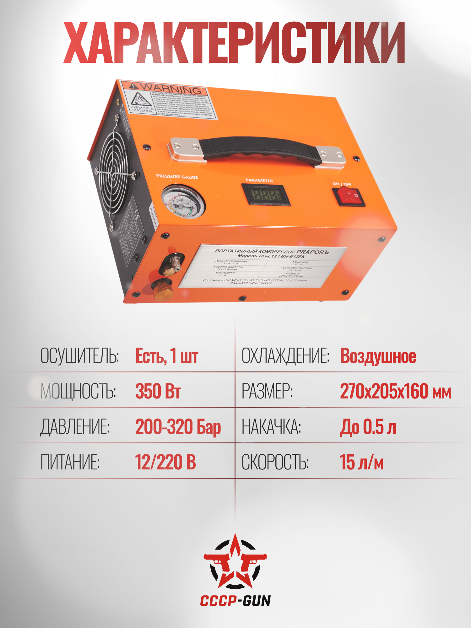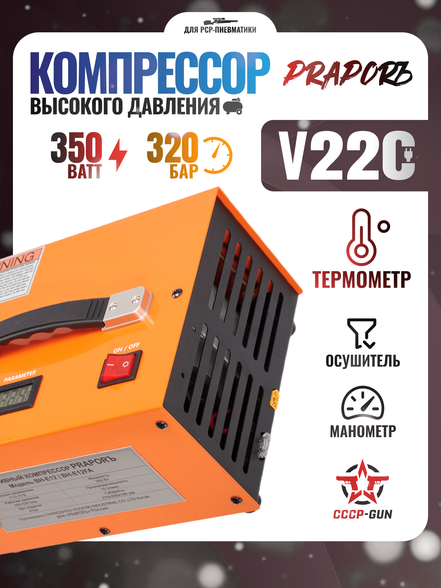 Электрический компрессор PraporЪ BH-E12BL (200-320 Атм, 220/12В)
