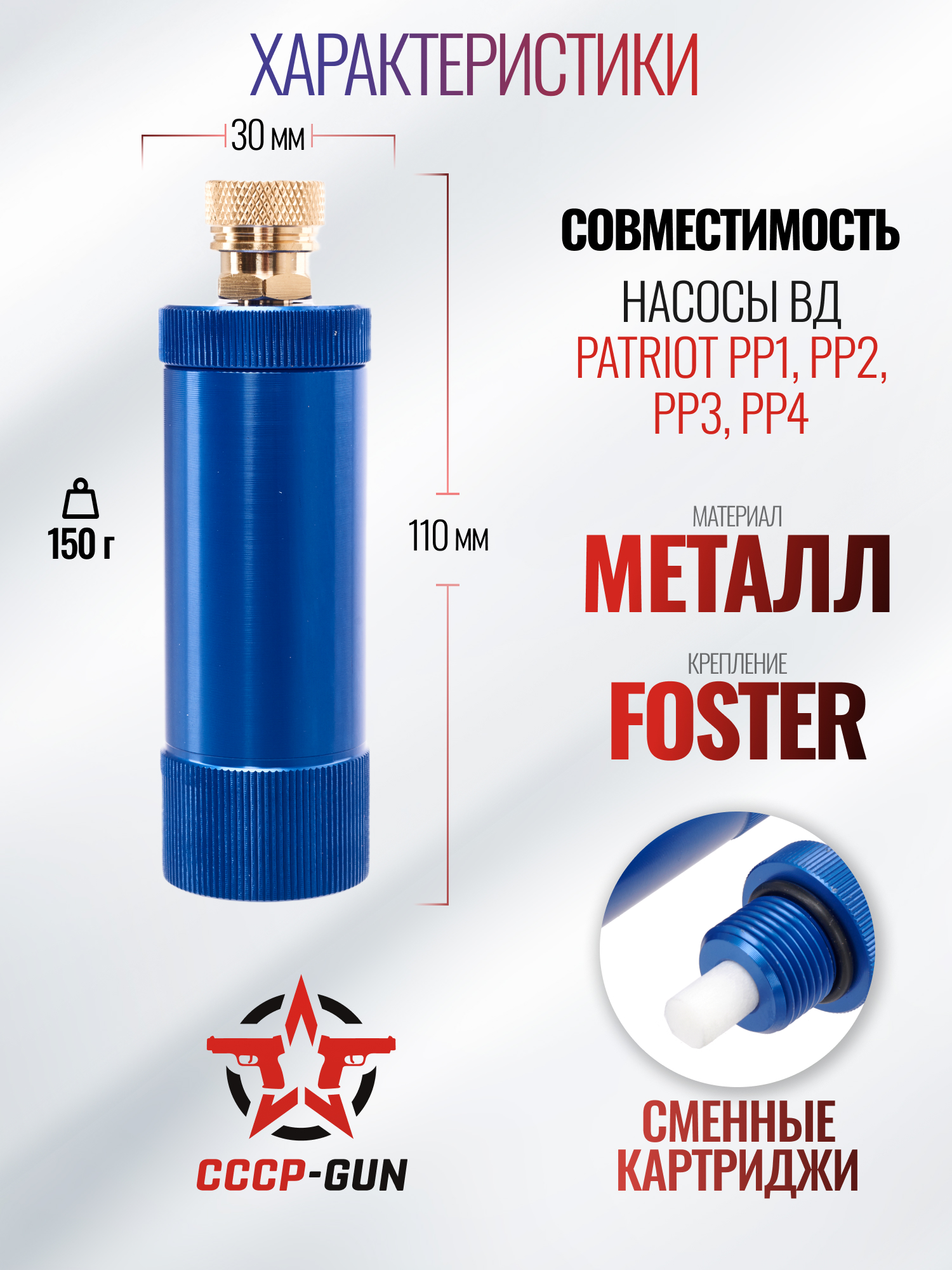 За очистку воздуха отвечают сменные картриджи - в комплекте с изделием Патриот идет набор запасных элементов. Следовательно, конструкцию осушителя выполнили разборной - заднюю пробка и корпус соединили посредством резьбы. Помимо указанных расходников в ЗИП также входят уплотнительные кольца.