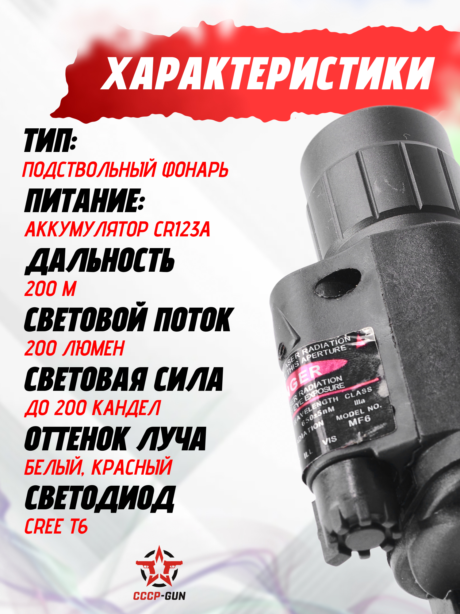 Фонарь подствольный Patriot BH-FLL01 (ЛЦУ, выносная кнопка)