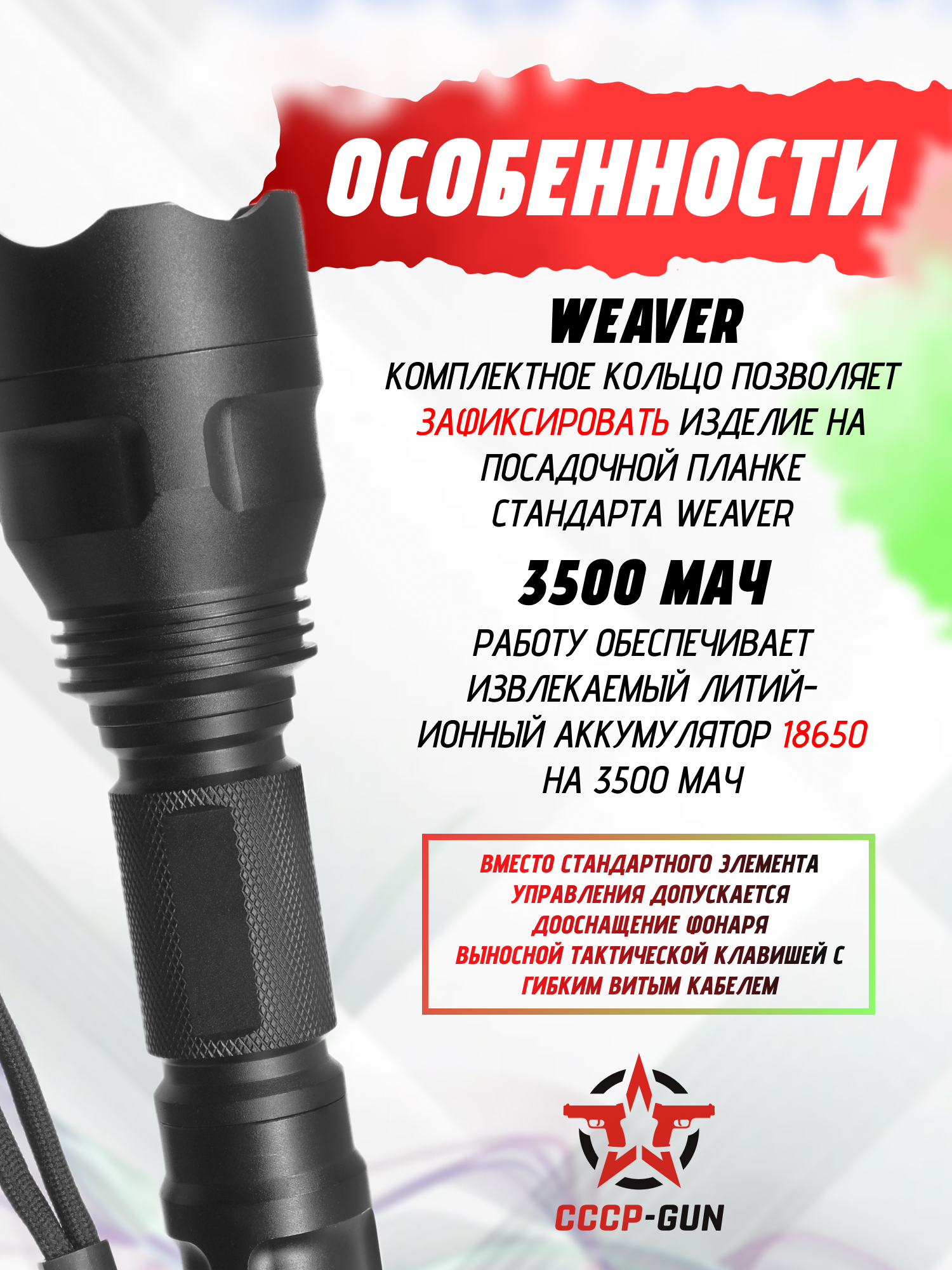 Фонарь тактический Patriot BH-FL1008 (Weaver, выносная кнопка)
