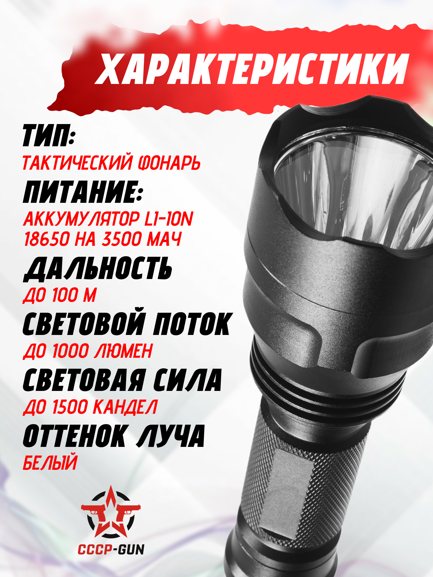 Фонарь тактический Patriot BH-FL1103 (Weaver, 1200 Люмен, выносная кнопка, зум)