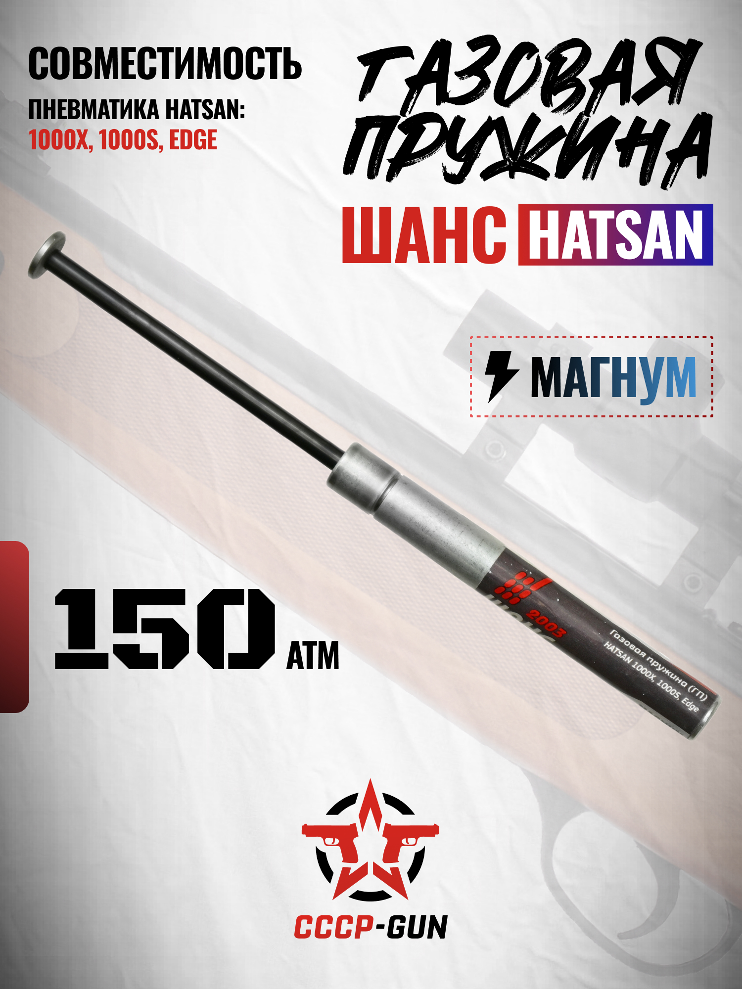 Подходит представленная газовая пружина на Хатсан Страйкер Эйдж, образцы 1000 с пометками S и X, а также на близкие к указанным винтовкам серии того же изготовителя. В этом случае пружина Шанс заправлена на 150 Атмосфер - это золотая середина для винтовок с компрессором 27х100 мм. Такое усилие позволяет высвободить потенциал изделий полностью, при этом не создавая излишней нагрузки.