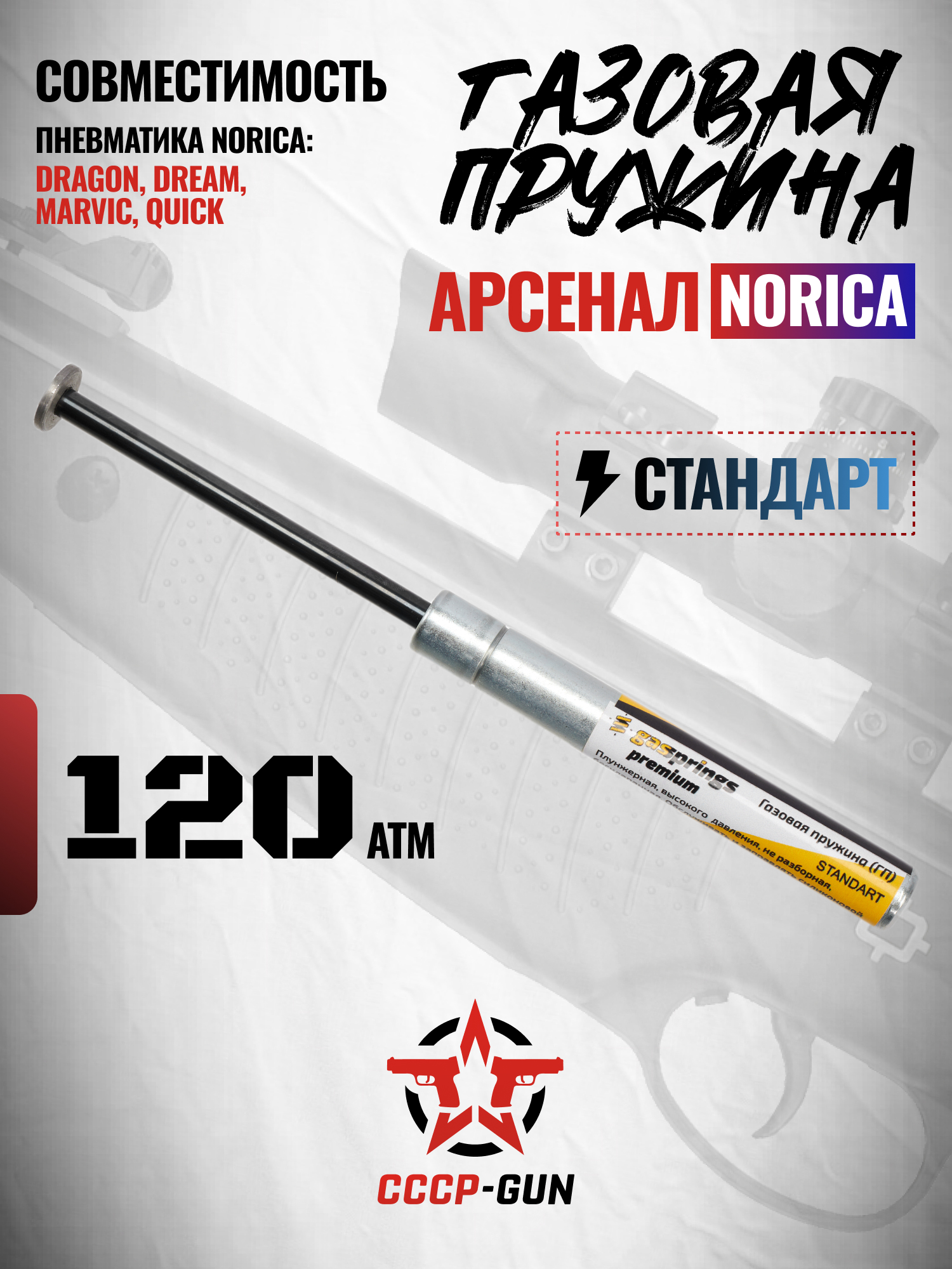 Газовая пружина для пневматики Arsenal совместима с испанскими винтовками Norica линеек Dragon, Dream, Marvic и Quick. Это изделие повышает кучность за счет уверенного импульса и делает отдачу сильно ниже.