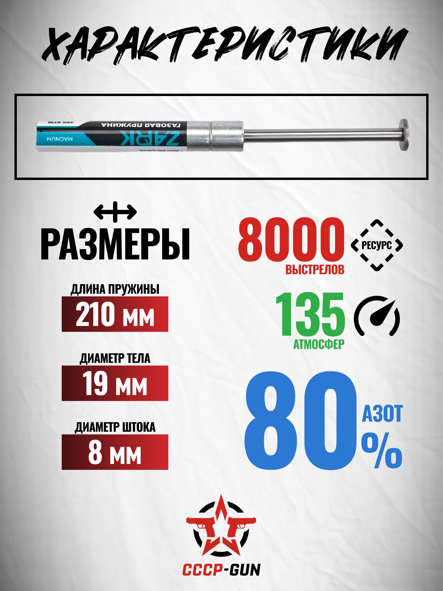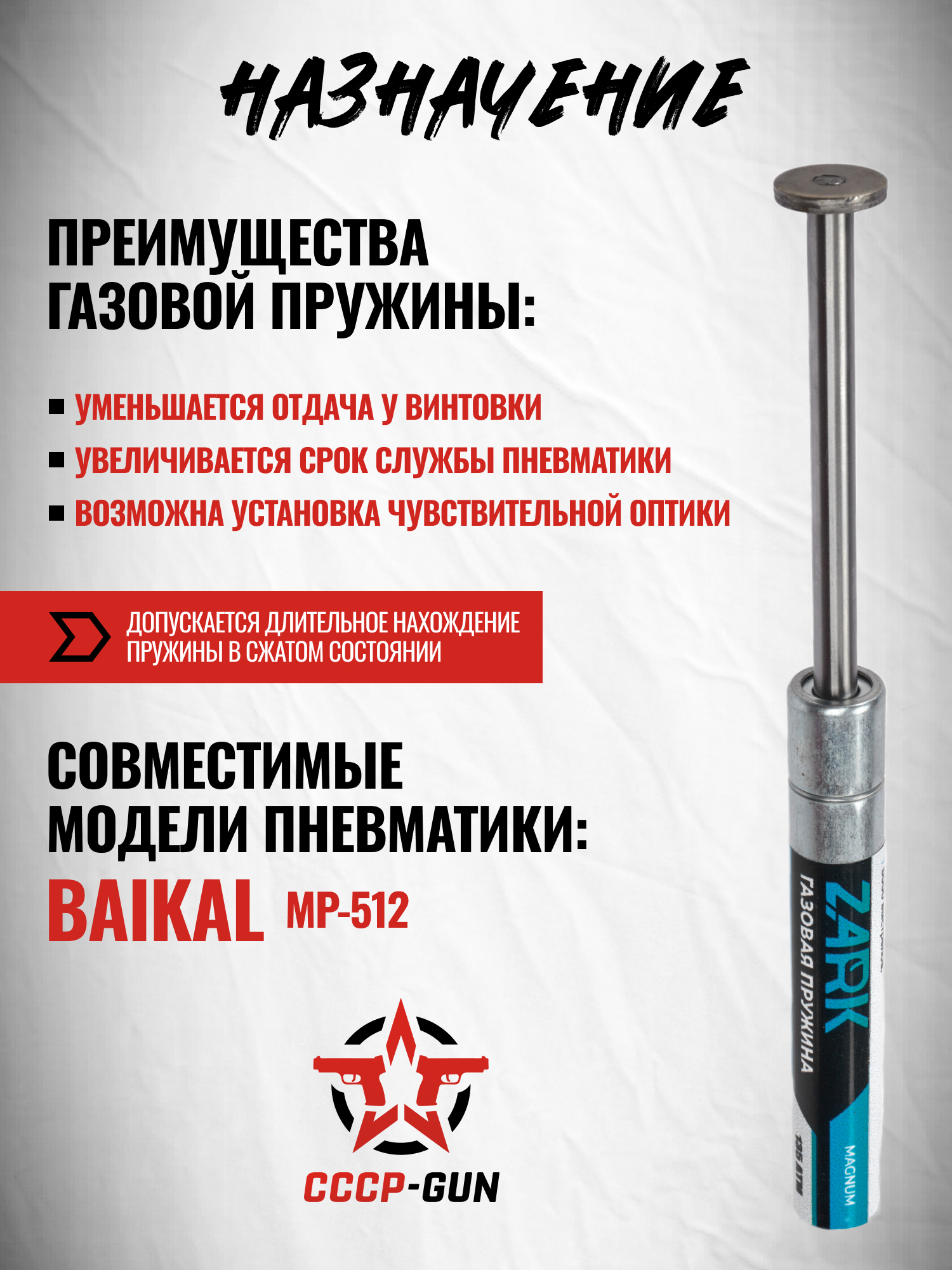 Пневматическая винтовка Байкал МР 512 - востребованная российская винтовка, прославившаяся бюджетностью и прочностью, но при этом обладающая не выдающимися характеристиками в стоковом состоянии. Газовая пружина позволит исправить это - модель Магнум от компании Zark Arms закачивают на 135 Атмосфер, за счет чего раскрывается полный потенциал компрессора рассматриваемой пневматики.