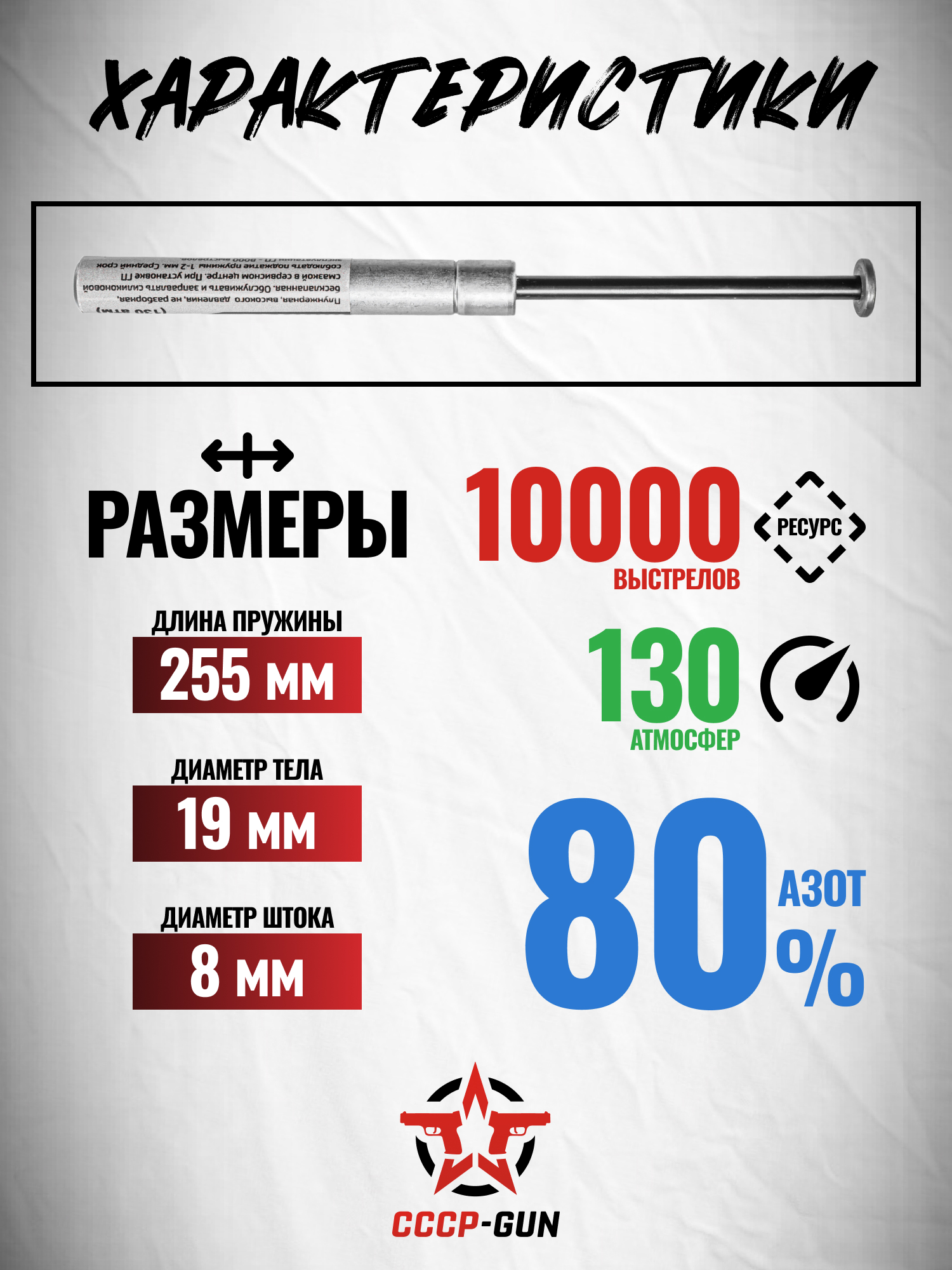 После установки снижается ударная нагрузка на оптические приспособления, что позволяет применять даже чувствительное оборудование без риска повреждений. Увеличенный до 10000 выстрелов ресурс дает использовать газовую пружину продолжительное время. Она герметична и не требует ухода.