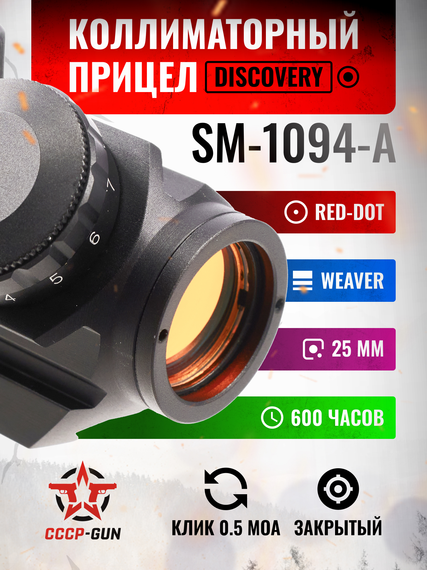 Коллиматорный прицел Discovery DMR 04 1x25 (Weaver, Red Dot)