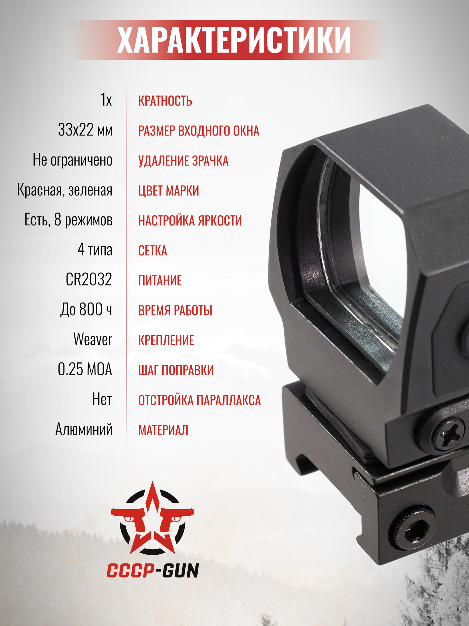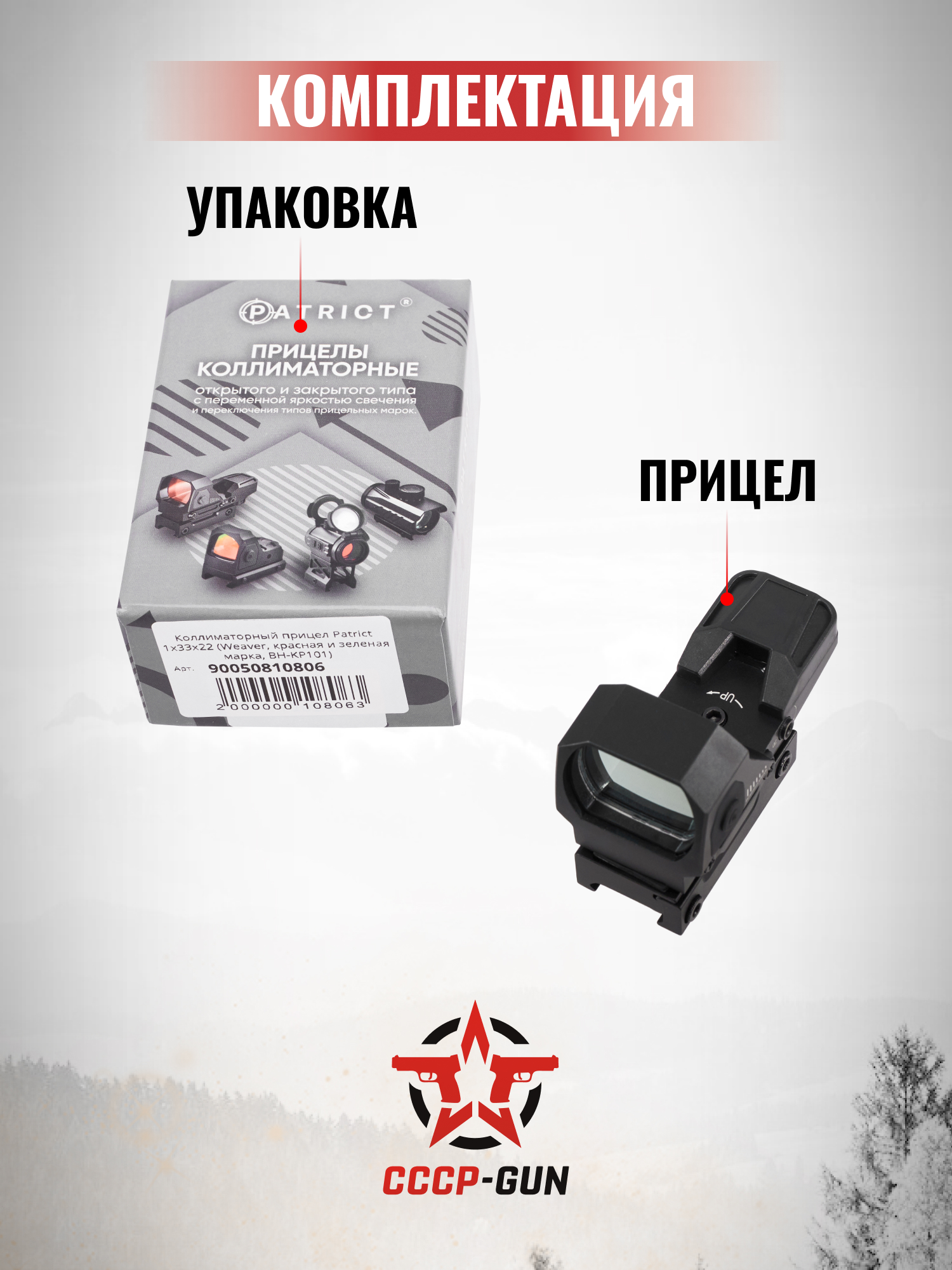 Коллиматорный прицел Patrict 1x33x22 (Weaver, красная и зеленая марка, BH-KP101)