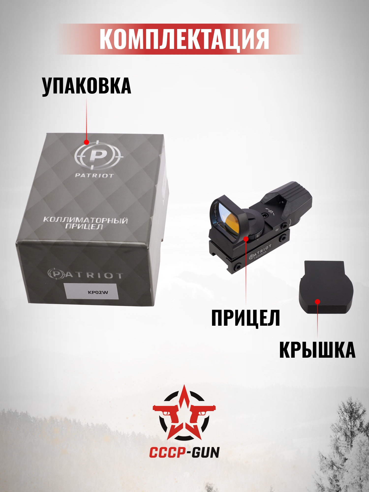 | Комплектация | Коллиматорный прицел, крышка, инструкция, фибра для протирки, батарейки, ключ, упаковка |
