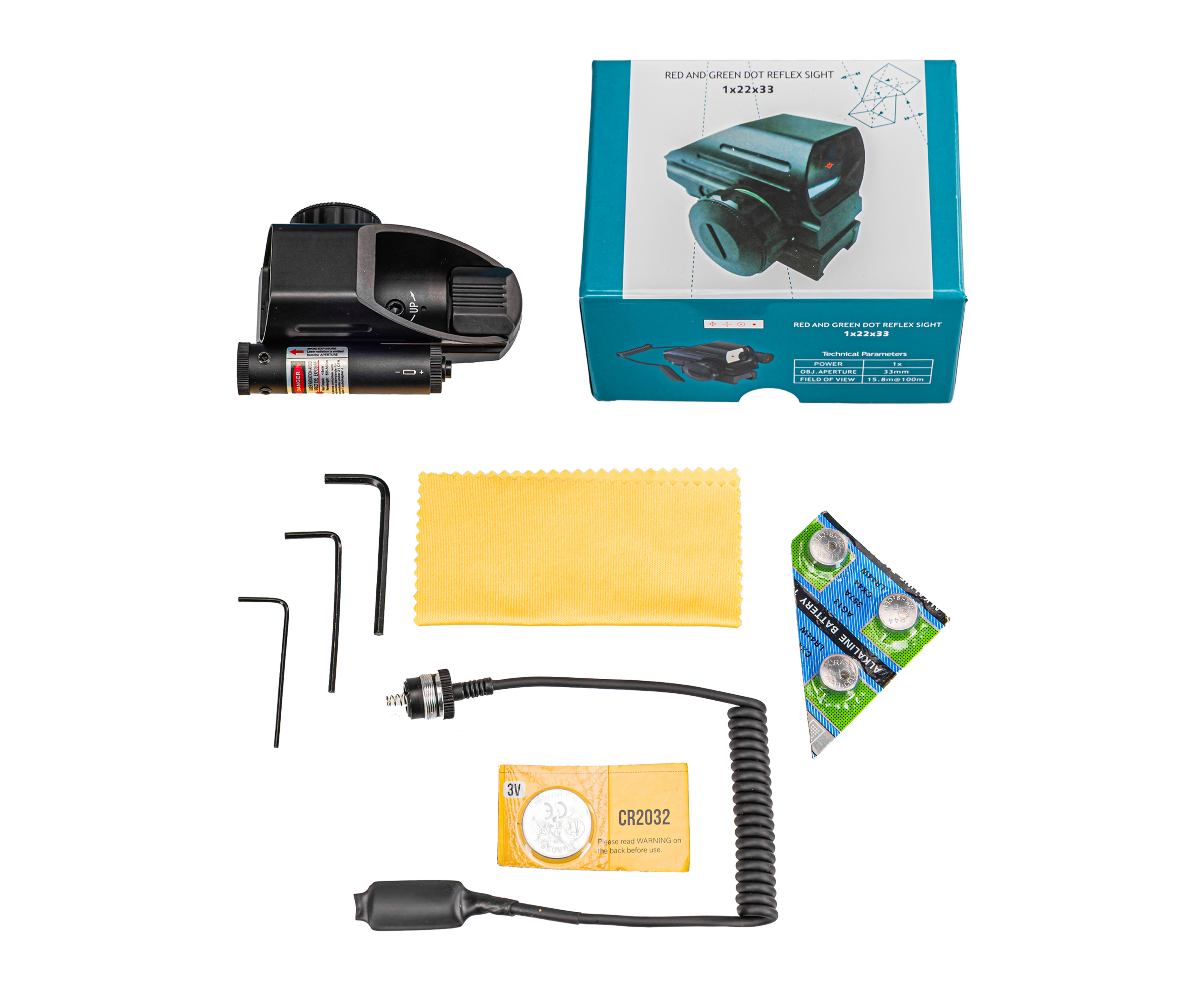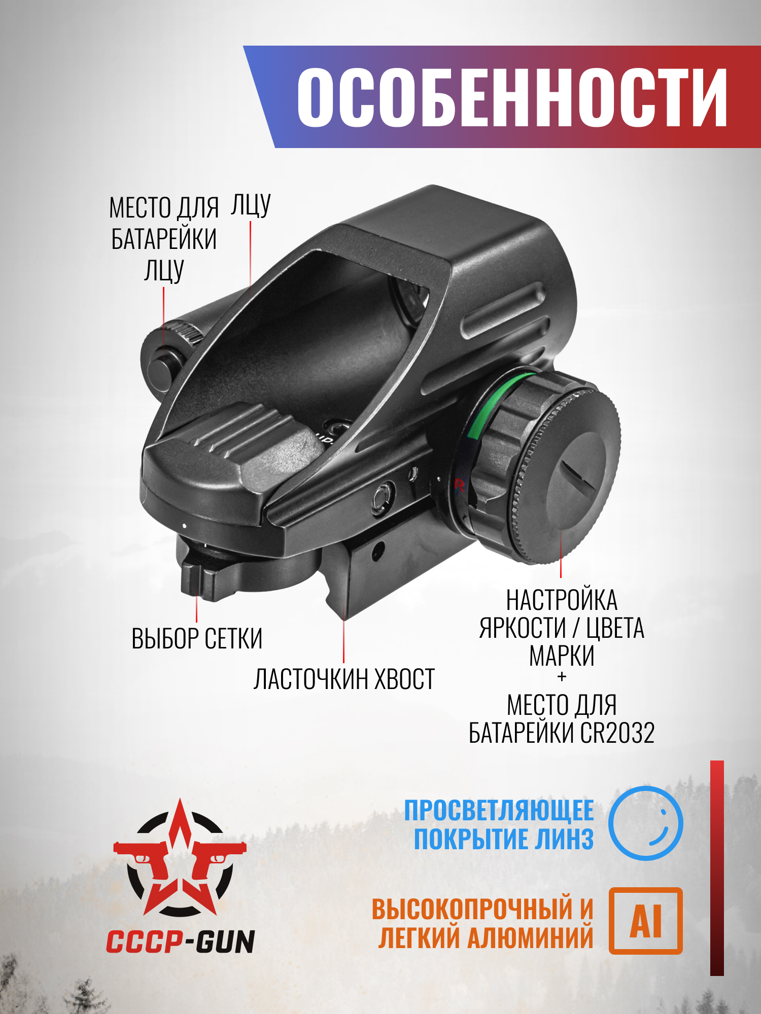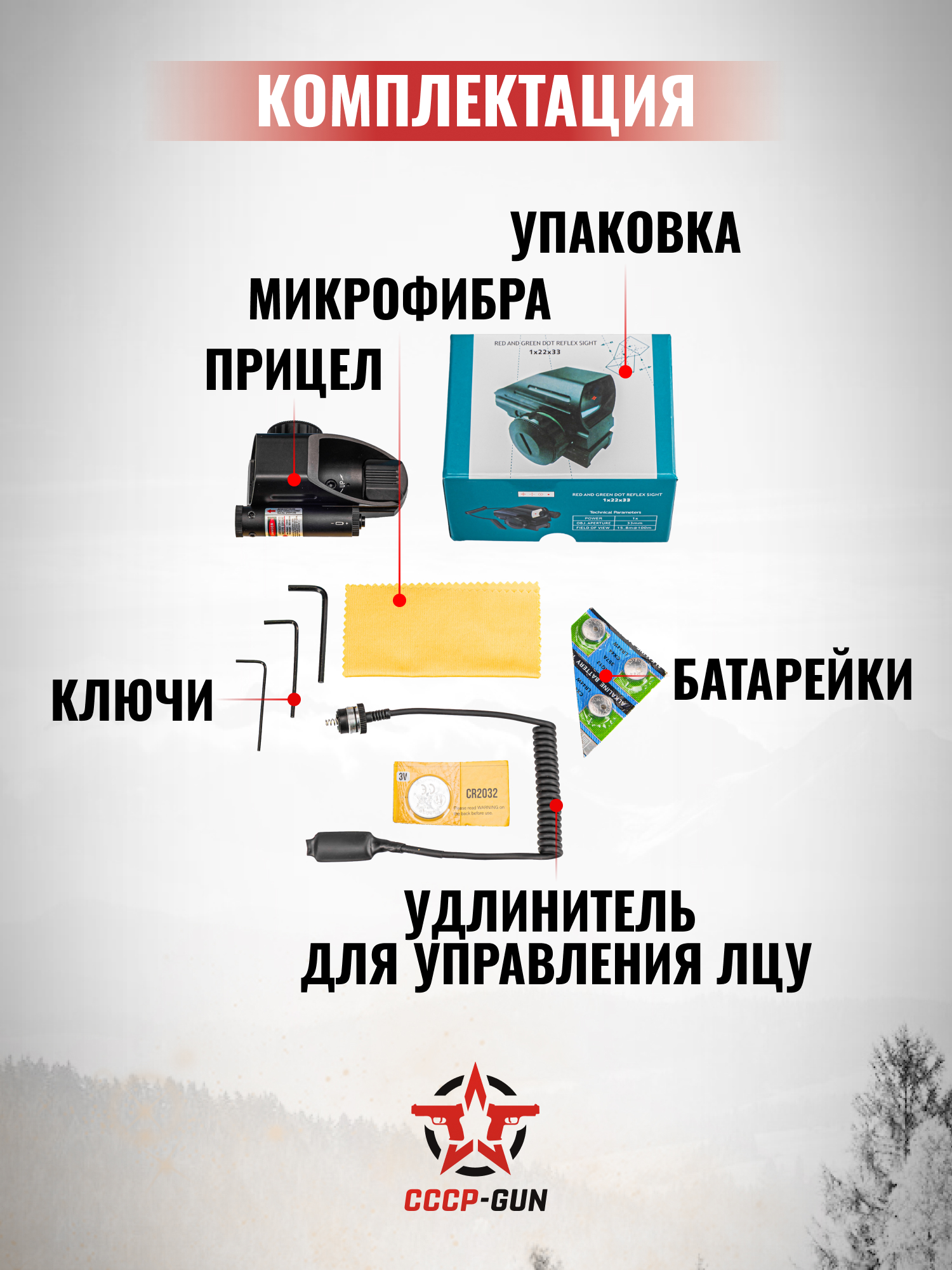 | Комплектация | Коллиматорный прицел, ЛЦУ, инструкция, фибра для протирки, батарейки, ключ, упаковка |