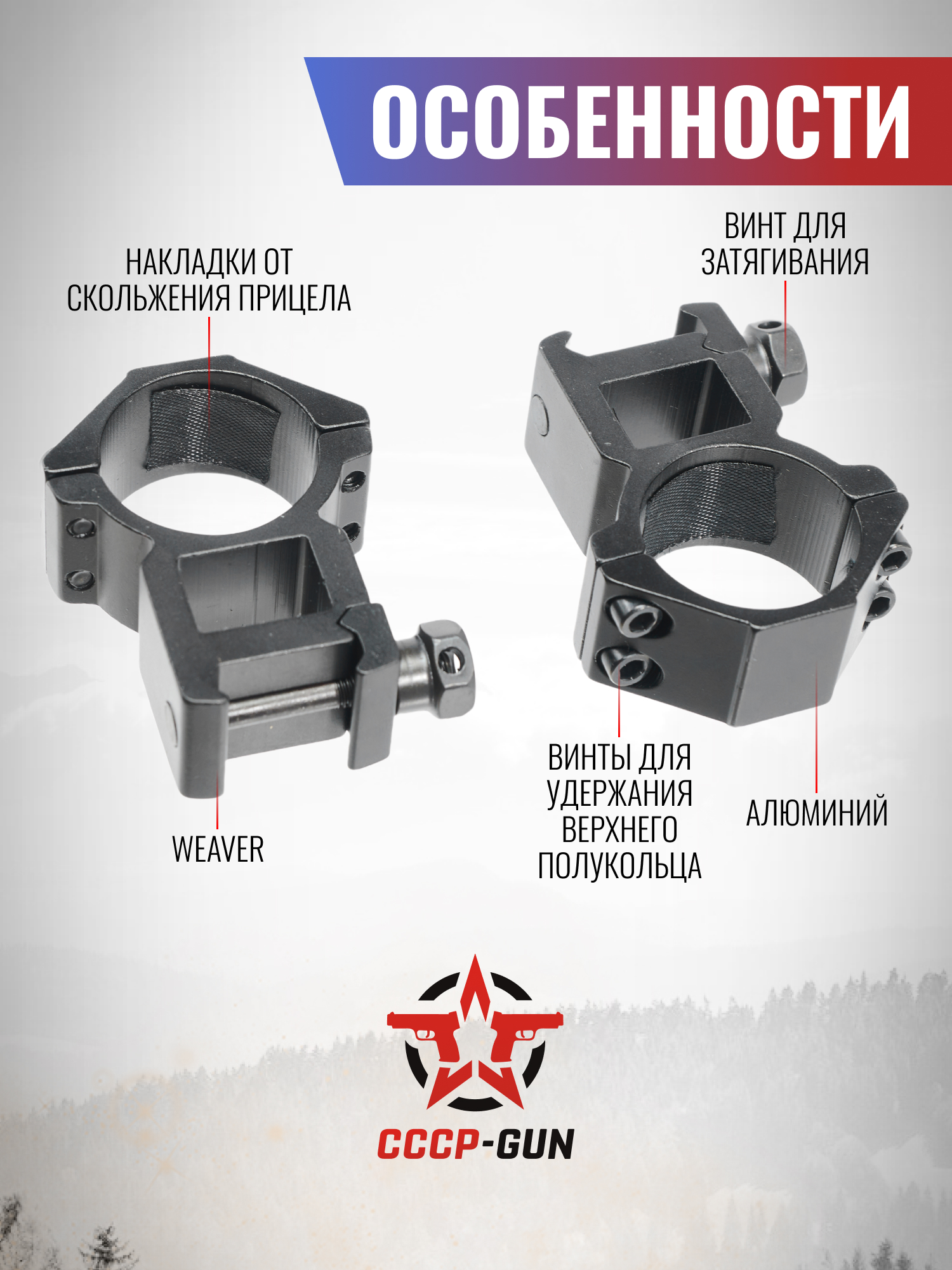 Кольца Discovery Scope Mounts (35 мм, Ласточкин Хвост, высокие 21 мм, 6 винтов)