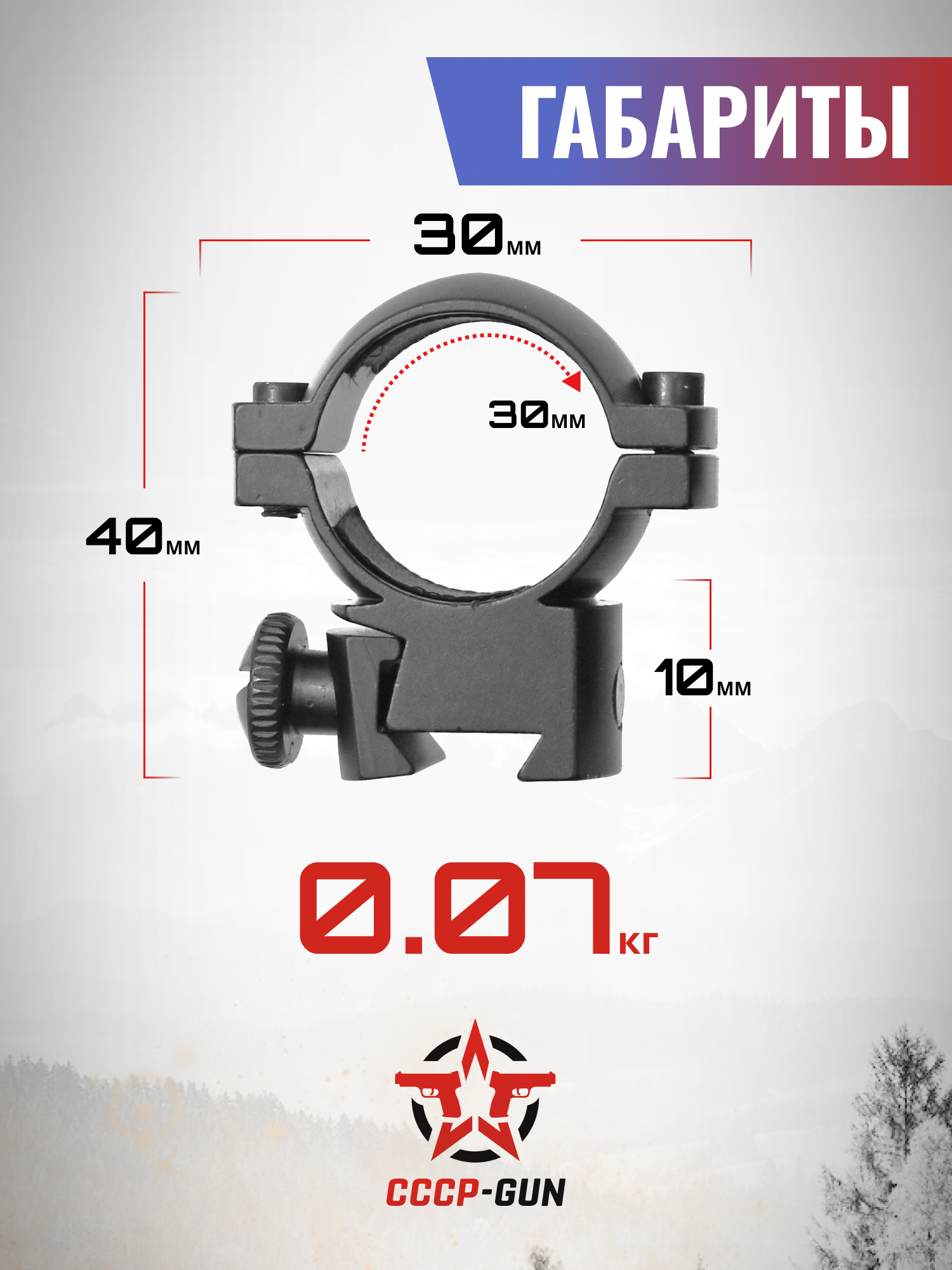 Обозреваемый образец колец разрабатывали под платформы оснащенные востребованным установочным интерфейсом Вивер 22 миллиметра. Для монтажа используются винты с накаткой, которая позволит произвести первичную примерку без инструмента. После финального размещения стрелку понадобится зафиксировать крепеж посредством отвертки с плоским жалом.