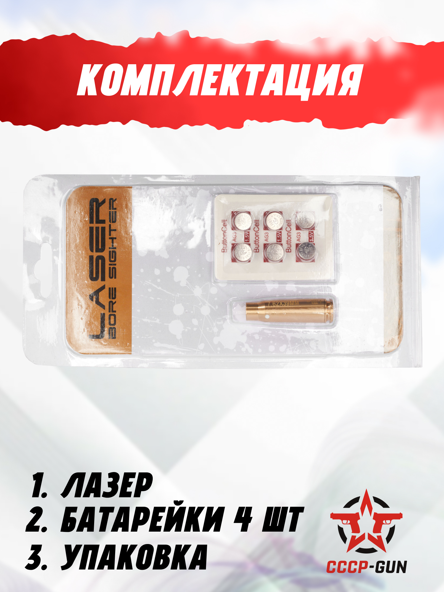 | Комплектация | Лазер холодной пристрелки, батарейки, упаковка |
