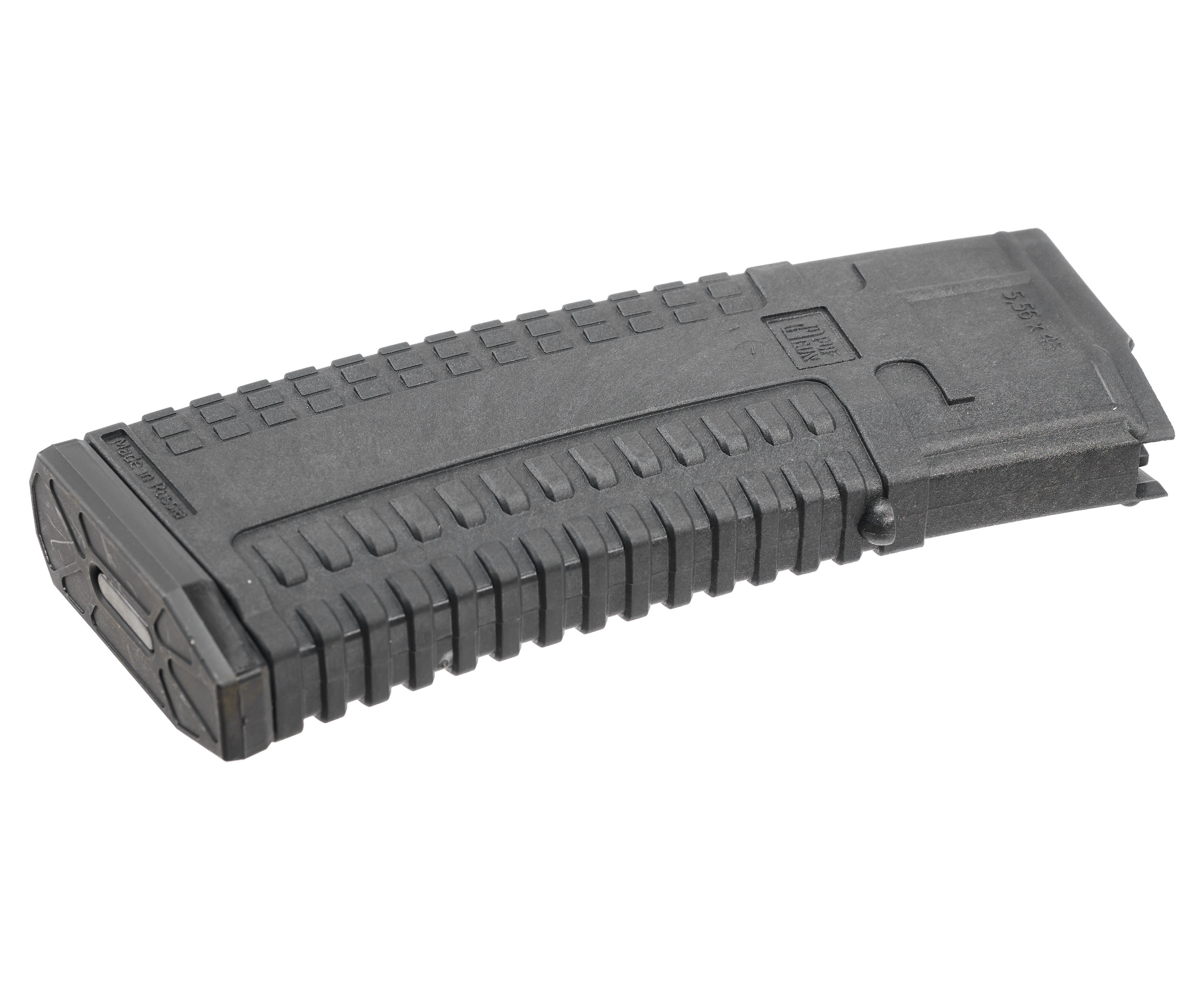 Магазин 5.56 х45 от PufGun выполнен из черного пластика, невосприимчивого к пагубным внешним воздействиям. Рельеф на корпусе улучшает плотность хвата и помогает быстро достать изделие из подсумка или разгрузки для последующей перезарядки. Небольшой вес в 0.16 кг снижает нагрузку как на снаряжение владельца, так и на сам автомат.