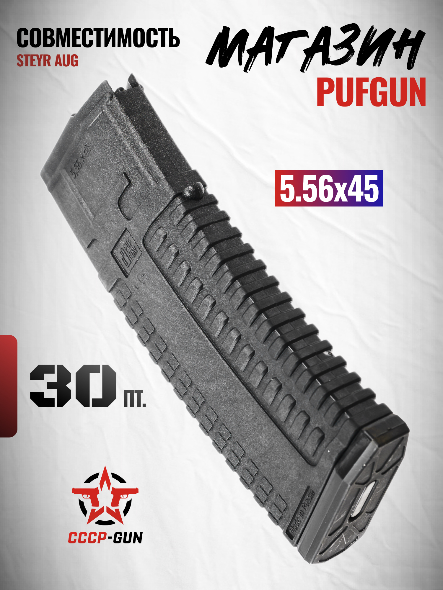Российский производитель PufGun известен своими магазинами, разработанными с характеристиками, необходимыми пользователям для результативной стрельбы. Все изделия бренда отличает надежность, облегченная конструкция и совместимость с большой линейкой карабинов и автоматов. Помимо выпуска экземпляров, подходящих к российским огнестрельным моделям, завод выпускает элементы боепитания для популярных зарубежных штурмовых винтовок.