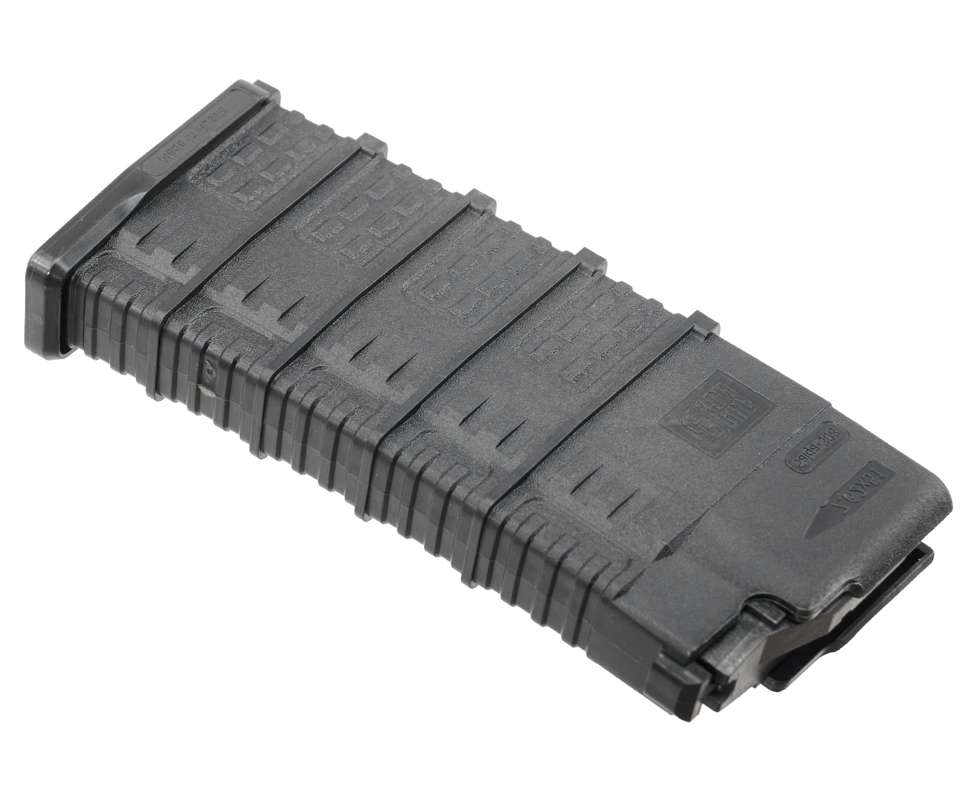 Общий вес магазина без патронов не превышает 0.22 кг. Он не будет перегружать карабин или разгрузку стрелка. Рельефная поверхность корпуса дает плотный хват во время перезарядки и исключает выскальзывание изделия из рук.