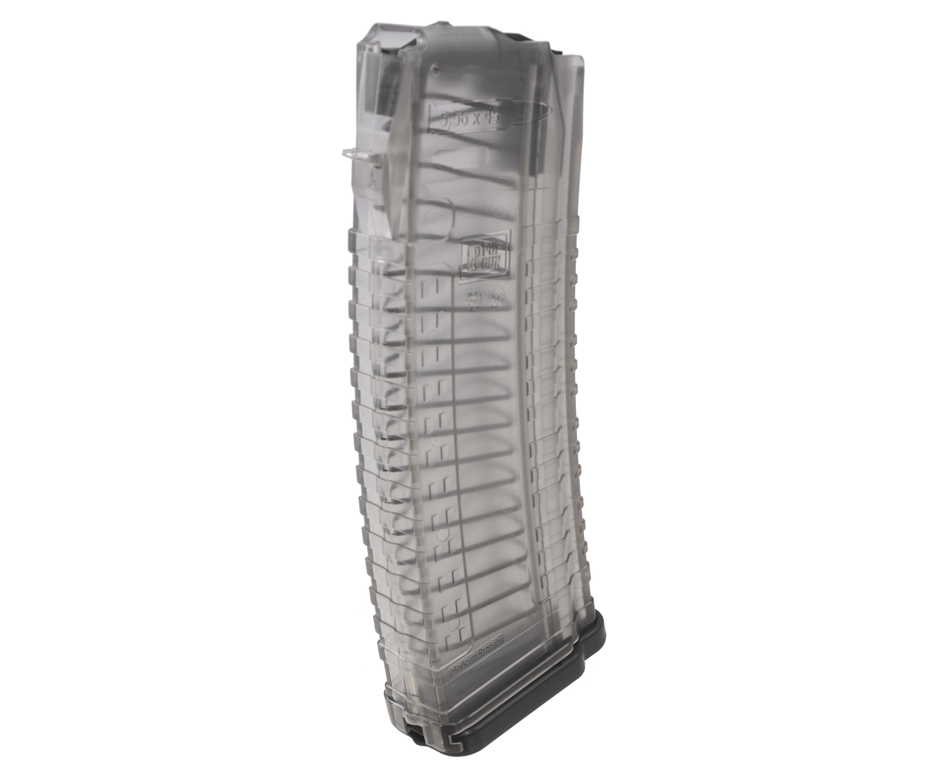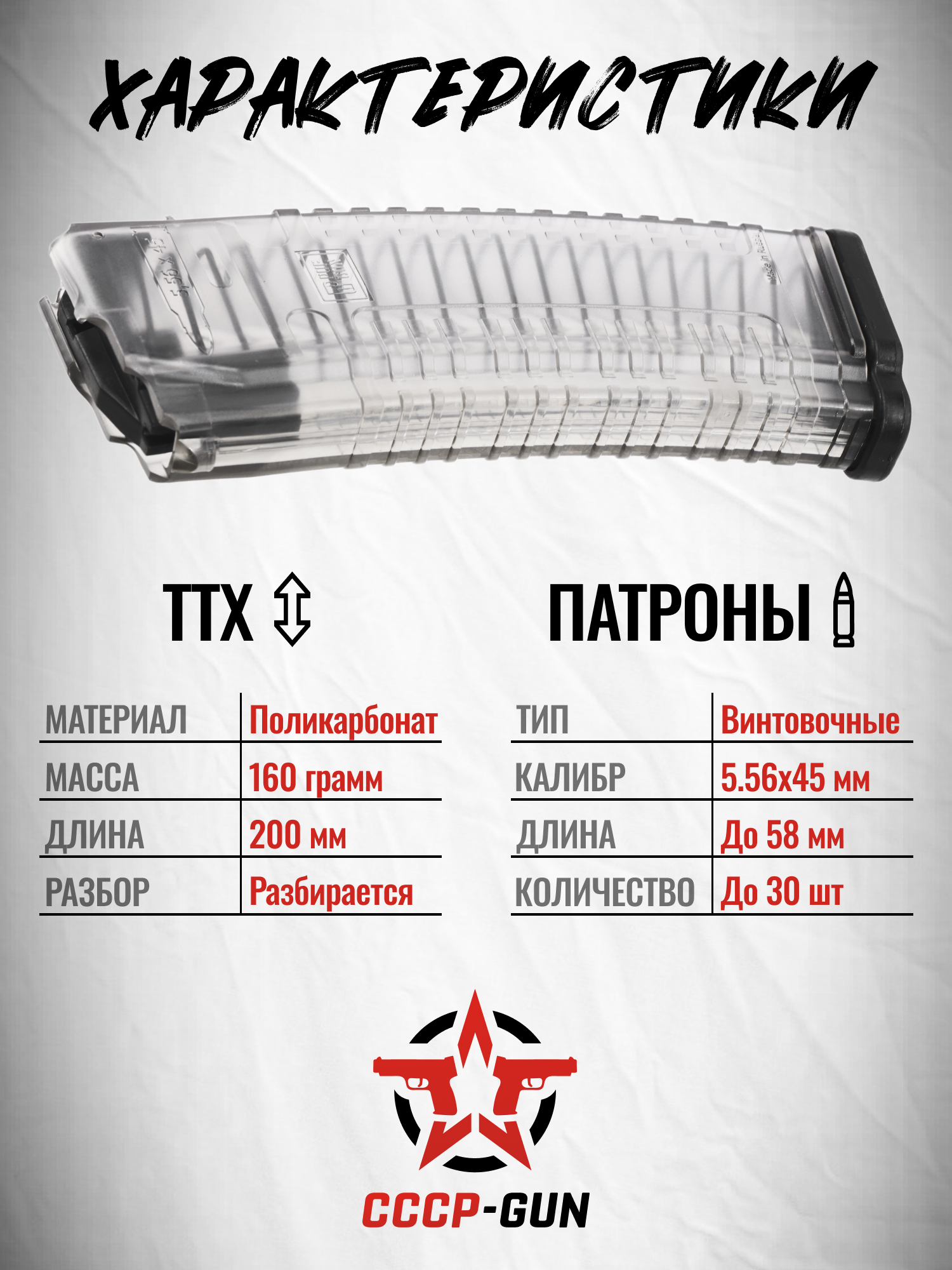 Таким решением стал обозреваемый магазин PufGun Mag Vp223-30/Tr. Он в полной мере совместим с карабинами на базе АК линейки ВПО-155. Экземпляр спроектирован под боеприпасы калибра 5.56х45 мм. Изделие также может подойти близким по конструкции платформам.