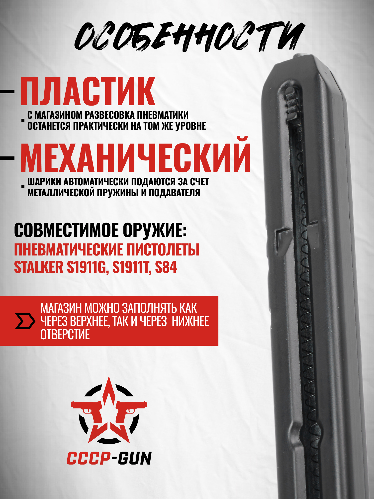 | Тип | Магазин к пневматическим пистолетам Stalker |