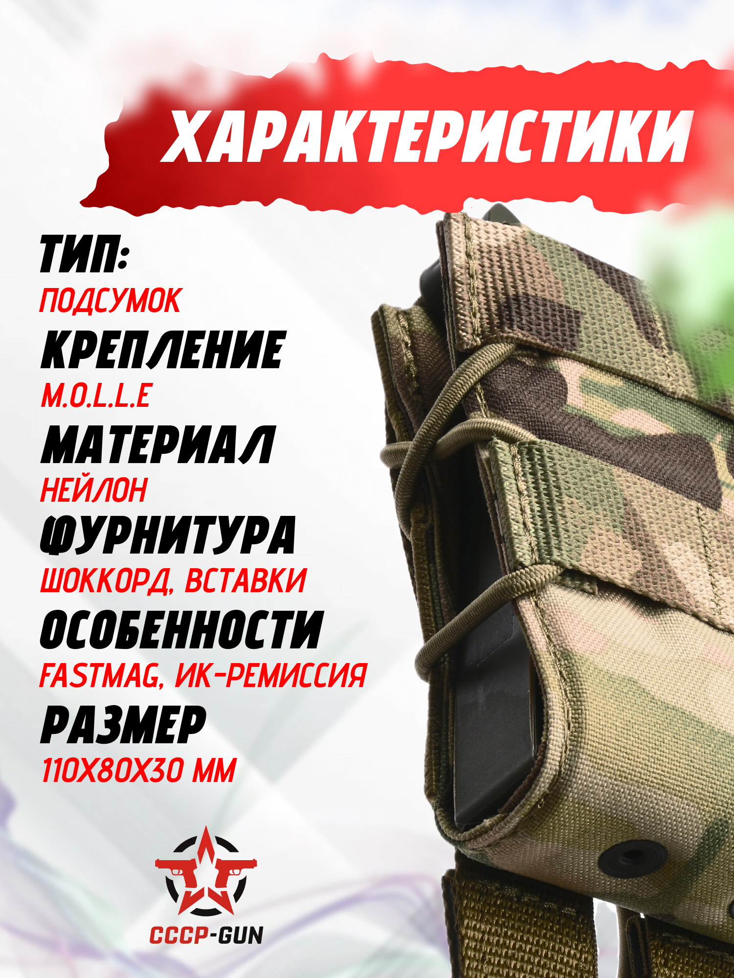 Магазинный подсумок Wartech Порыв-М (двухместный, АК, мультикам, MP-125-MCN)