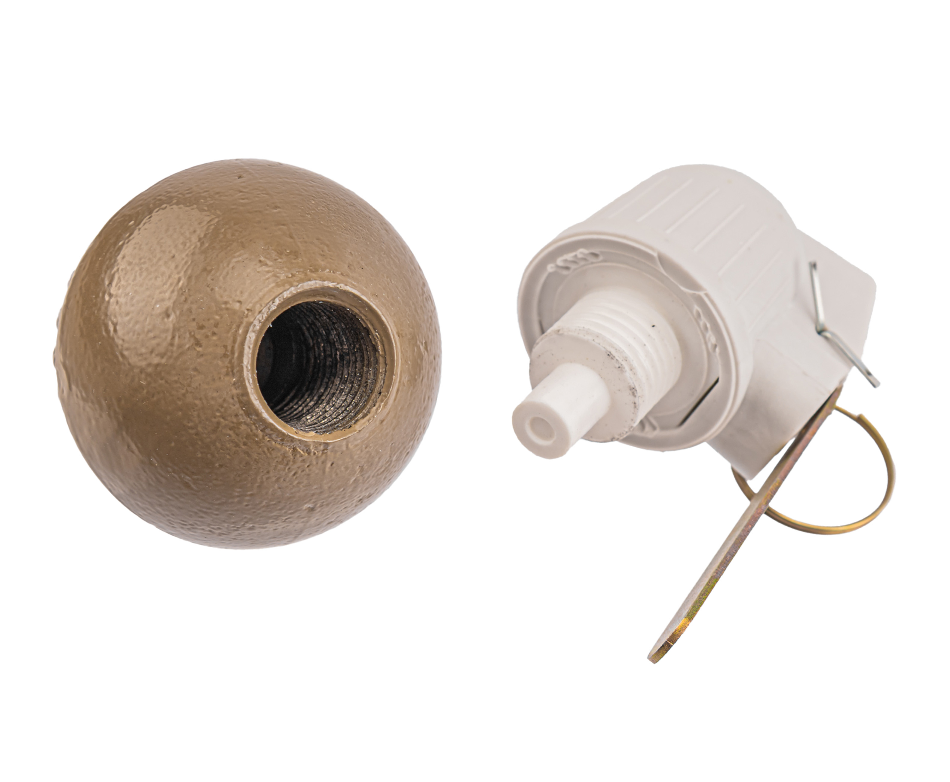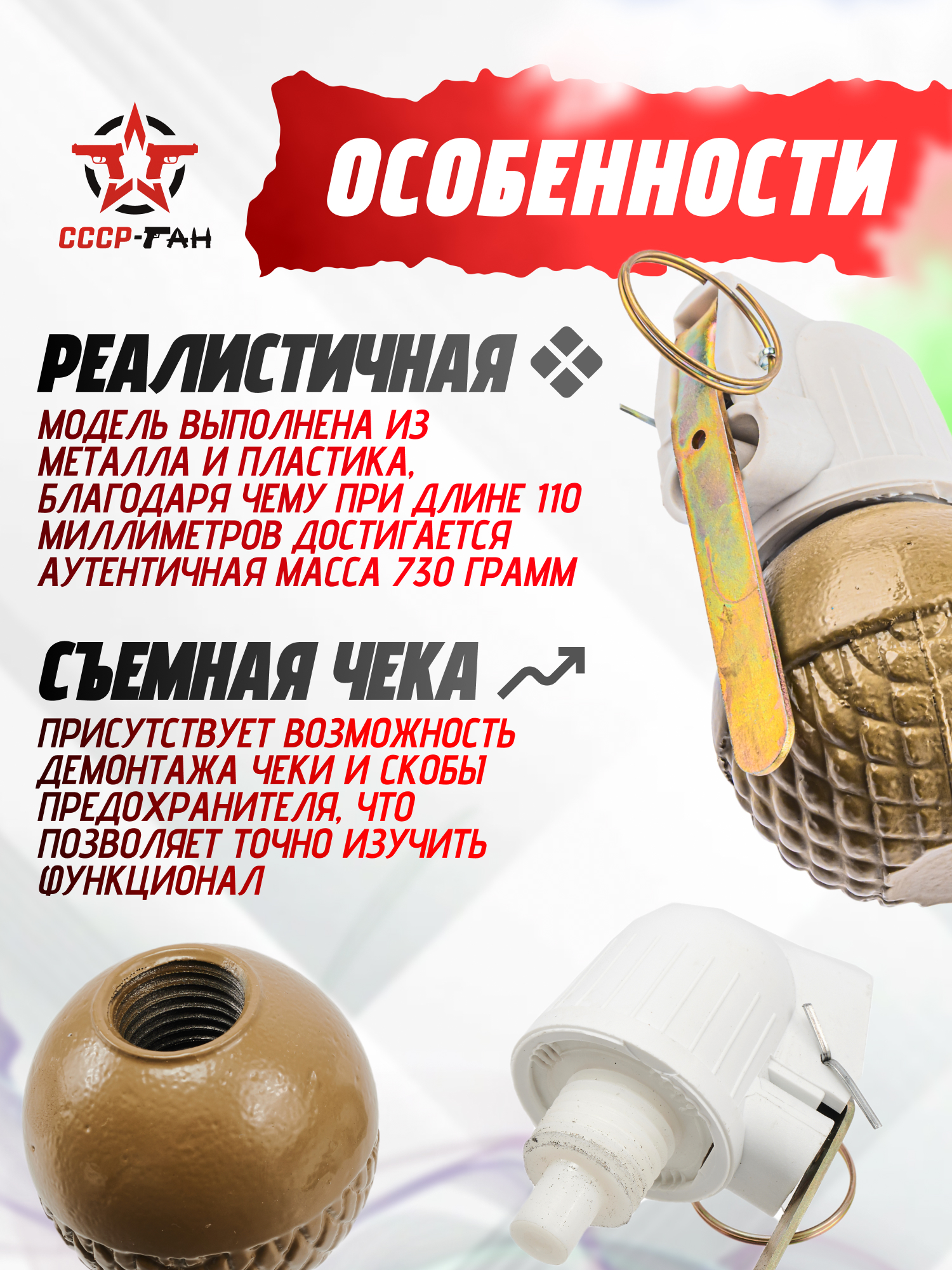 Муляж гранаты так же можно подвергнуть небольшой разборке и отделить детонатор от основного корпуса. Основной корпус гранаты совершенно не имеет полости и не может быть заполнен никаким взрывным веществом из-за чего макет является абсолютно безопасным.