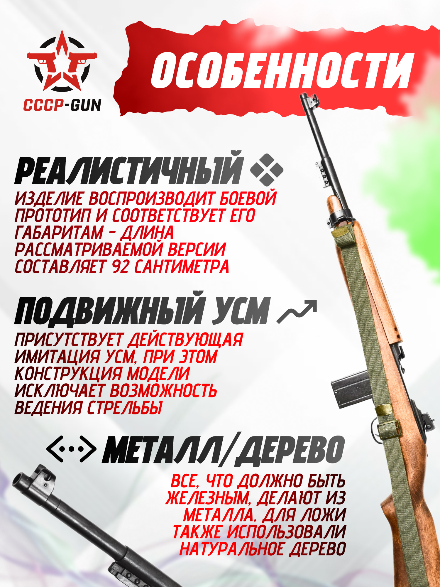 Макет карабина Деникс Д7/1120С М1 (ММГ, ремень) в точности копирует американскую самозарядную винтовку M1. Серьезную популярность оружие получило во времена Второй Мировой Войны.