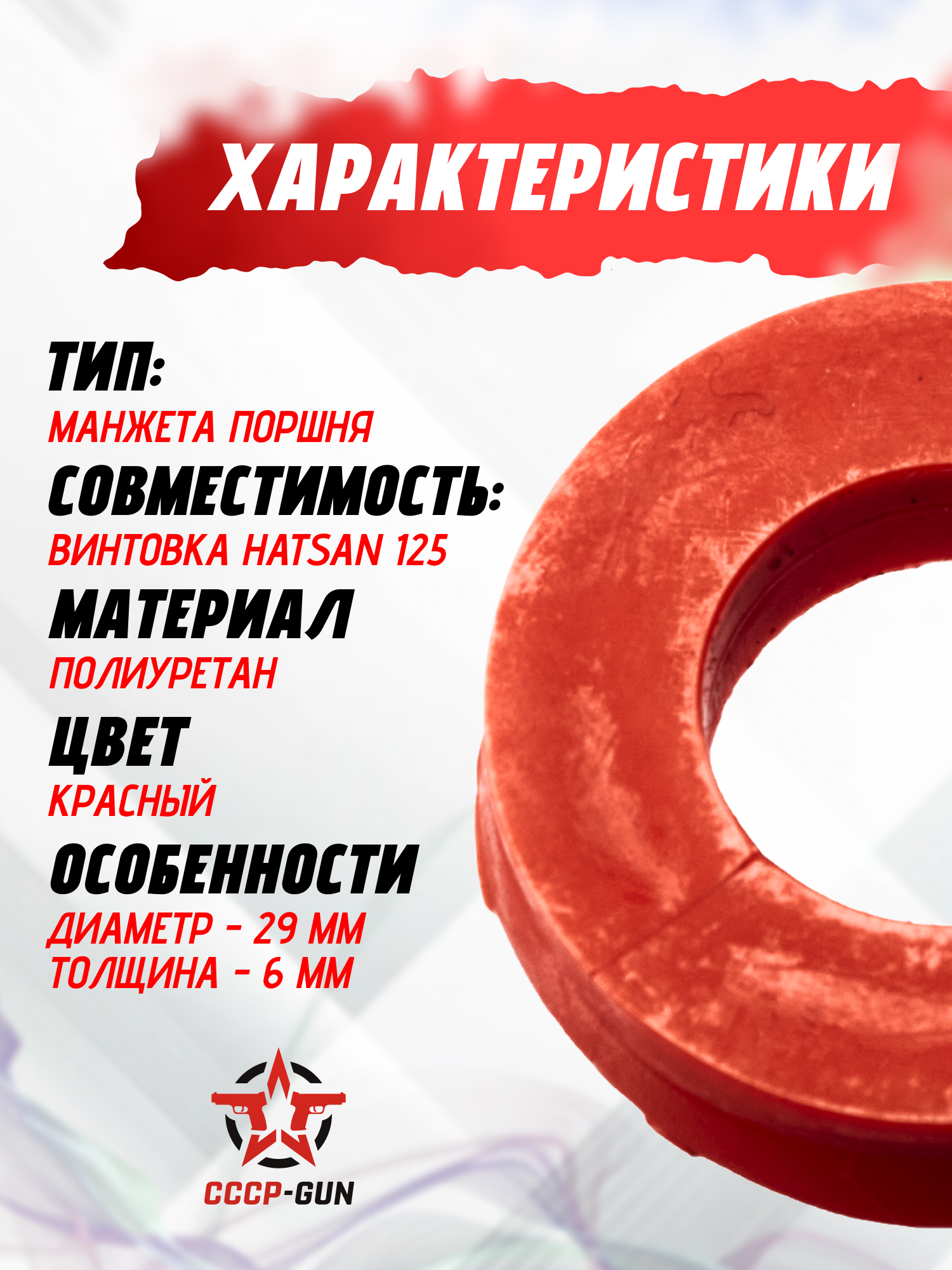 Манжета поршня монтируется в популярные турецкие пневматические винтовки Hatsan 125. Она имеет совместимый с моделью диаметр в 29 мм. Установка детали осуществляется без необратимых вмешательств в механизмы, для удобства рекомендуется использовать съемник пружины.