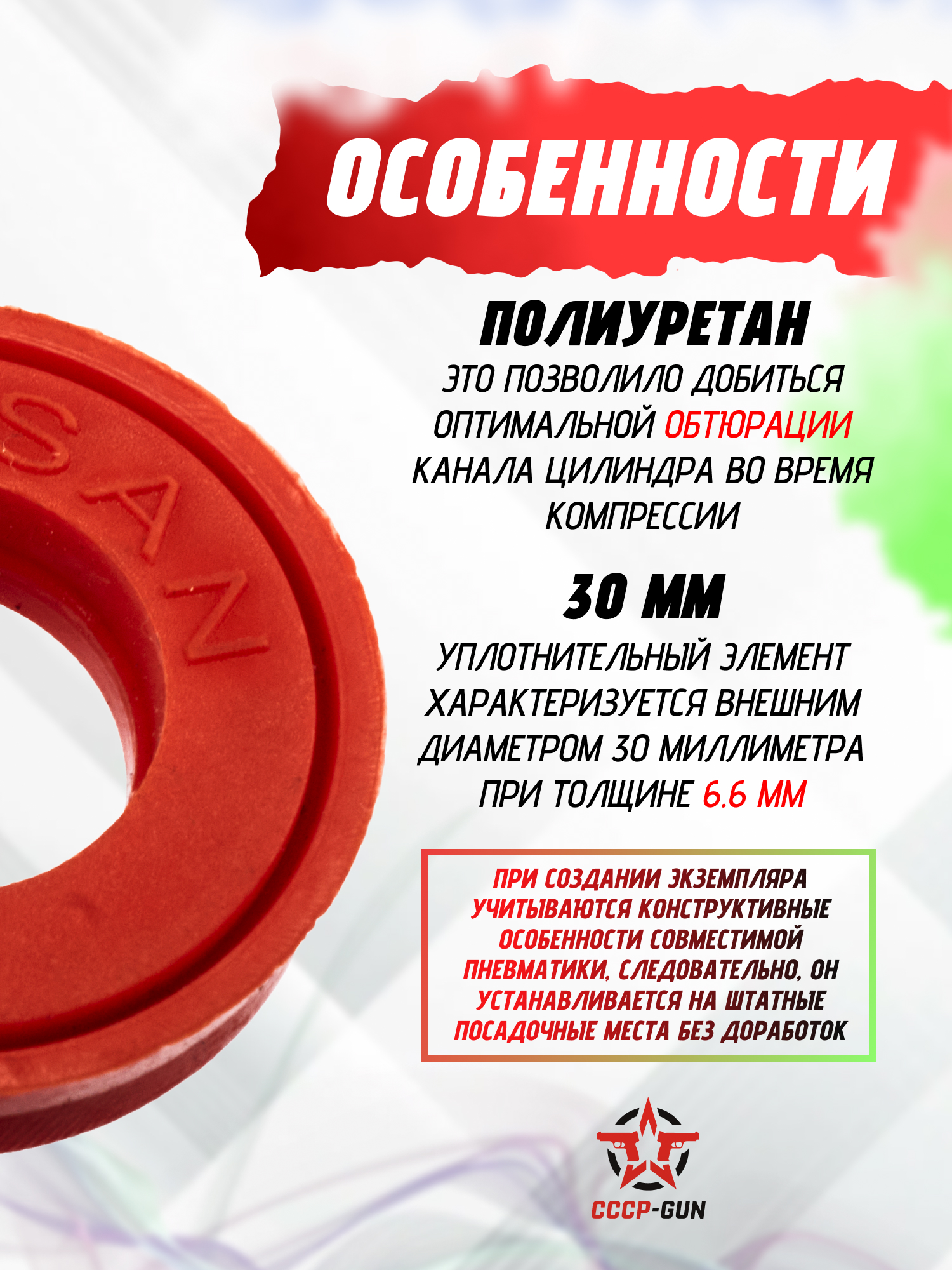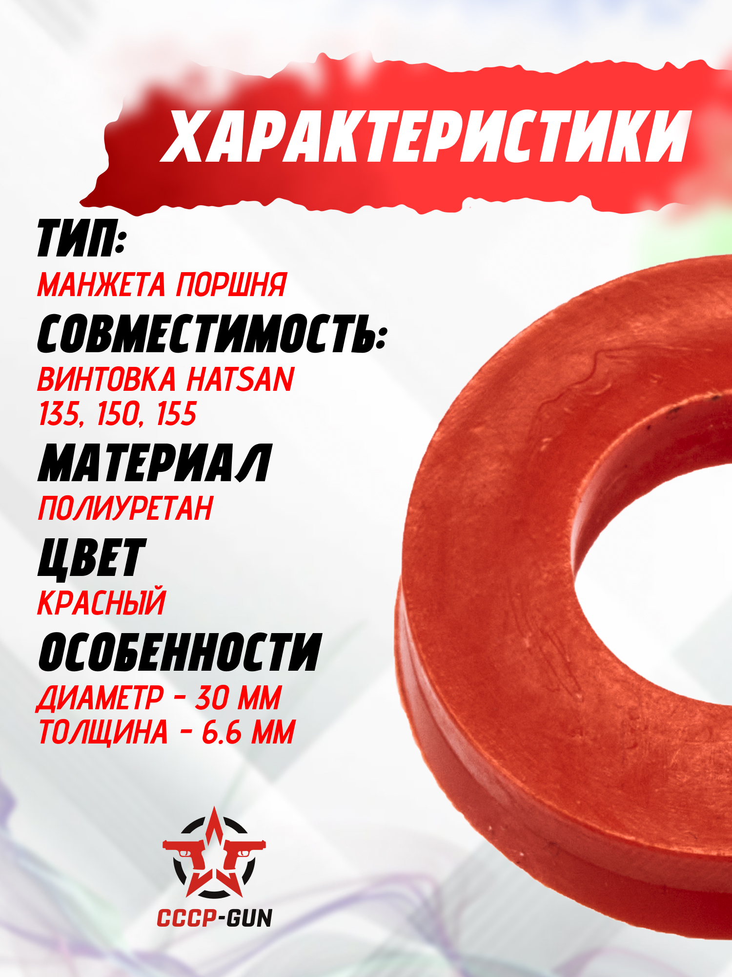 Экземпляр имеет толщину в 6.6 мм. Он подойдет для монтажа вместо штатной манжеты, если та износилась и нуждается в замене. После правильной установки, владелец может рассчитывать на восстановление базовой дульной мощности винтовки и более плавный ход поршня.