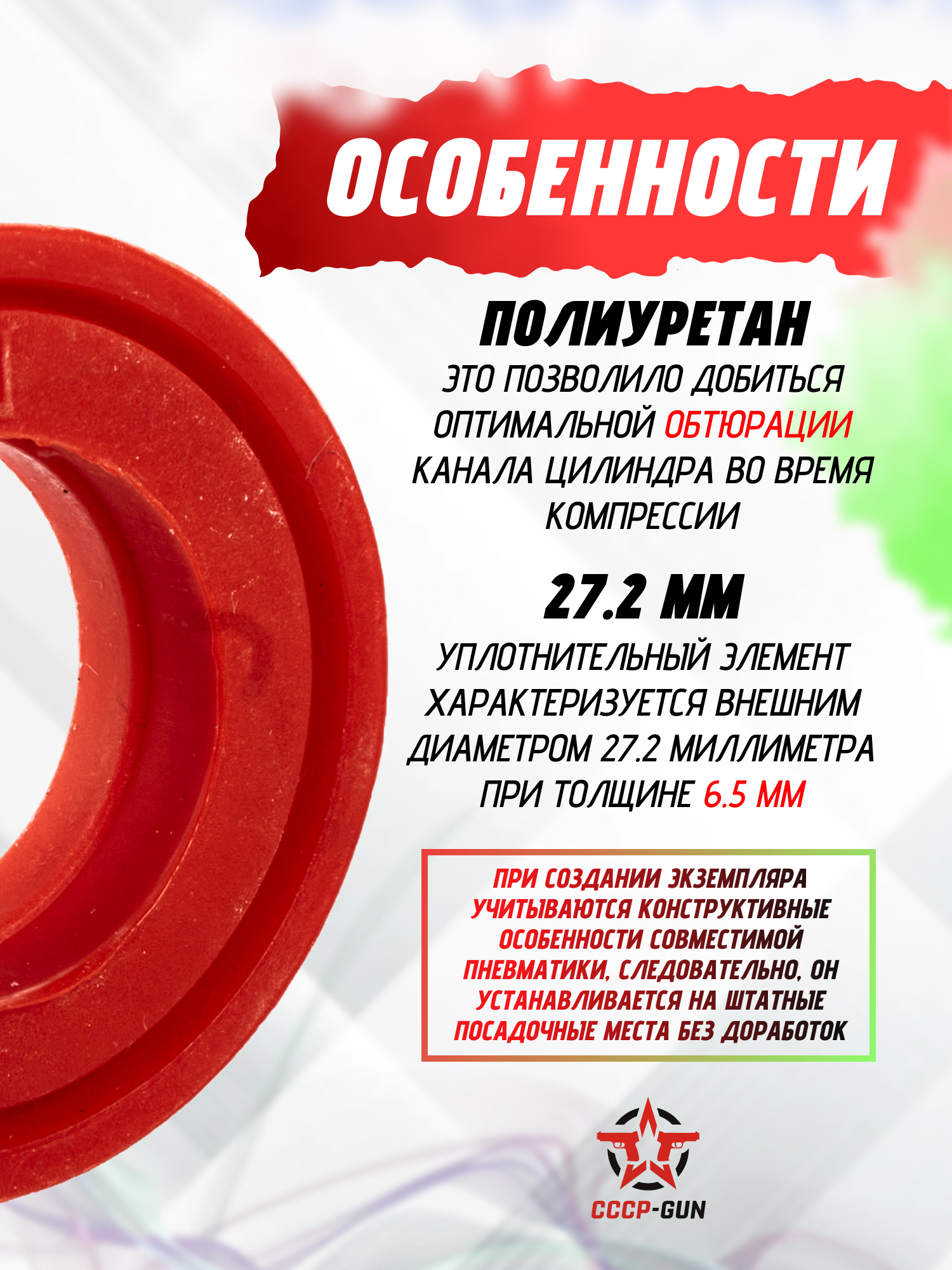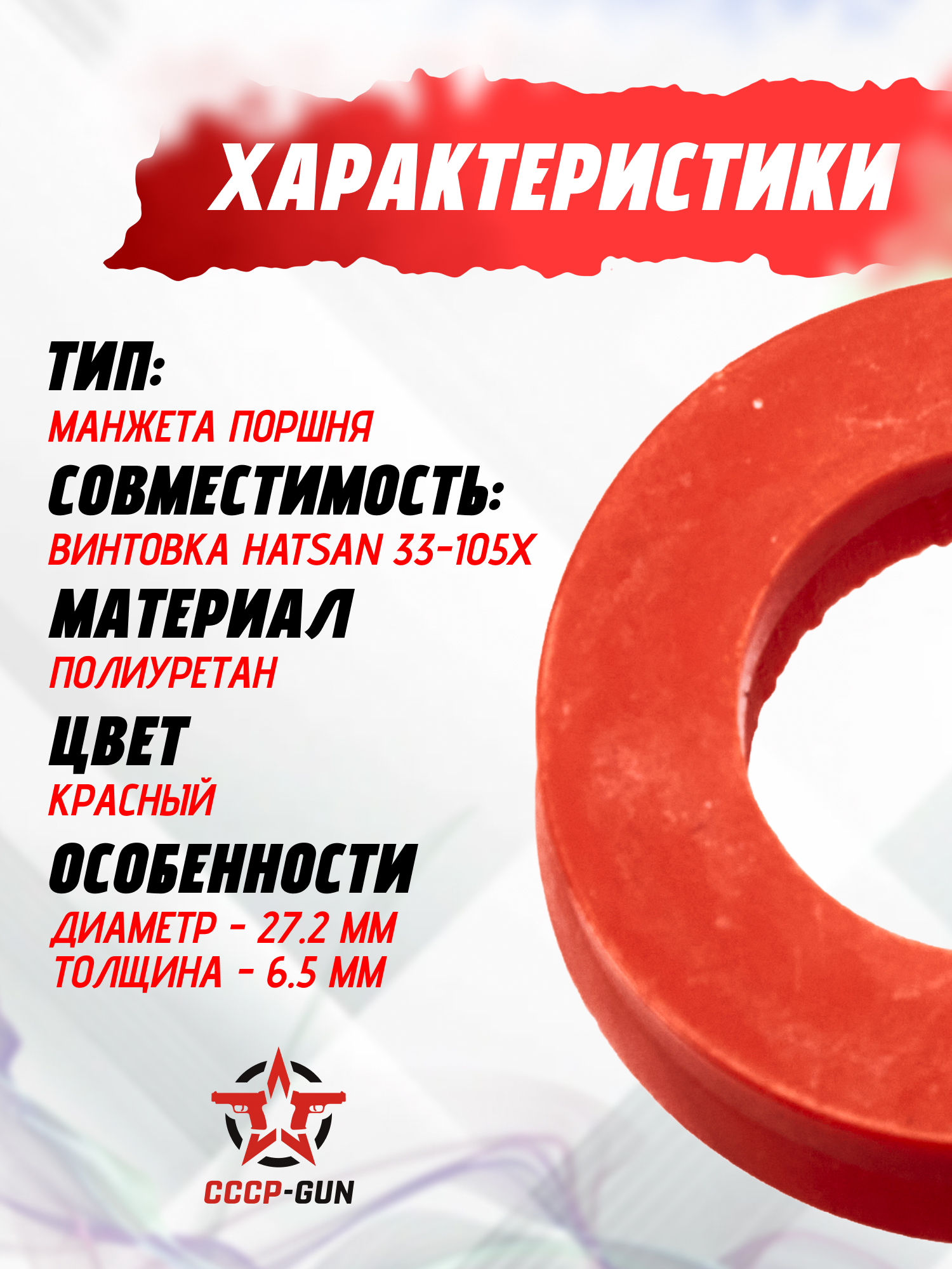 Рассматриваемая манжета поршня изготовителя Hatsan в полной мере совместима с его большим рядом пневматических винтовок, начиная от моделей маркировки 33, и заканчивая линейкой 105Х. Это универсальное решение, не требующее необратимых вмешательств в механизмы оружия. Диаметр экземпляра составляет 27.2 мм.