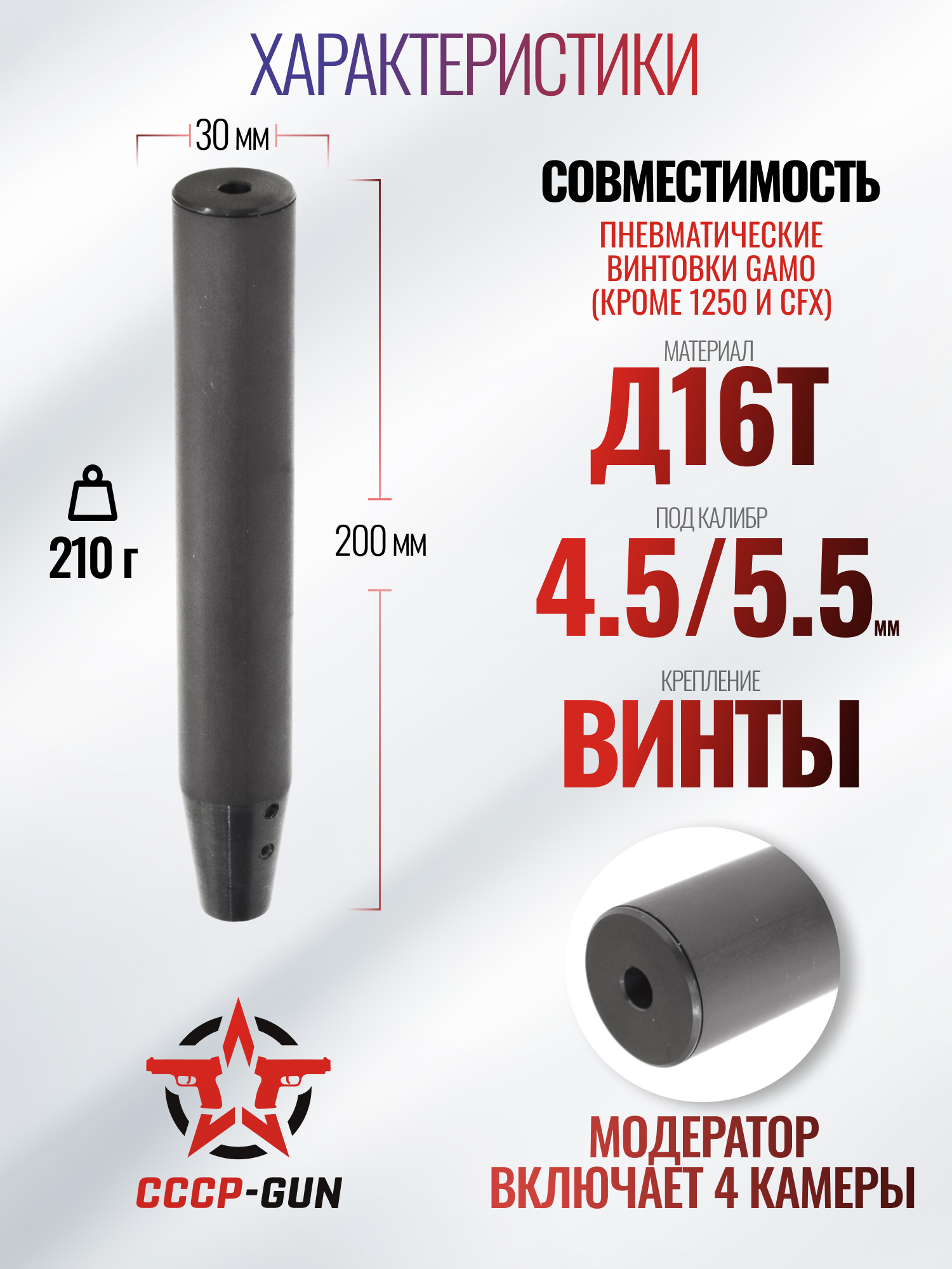 Модератор 4-камерный модульный для винтовок Gamo BH MD141 (кроме 1250 и CFX)