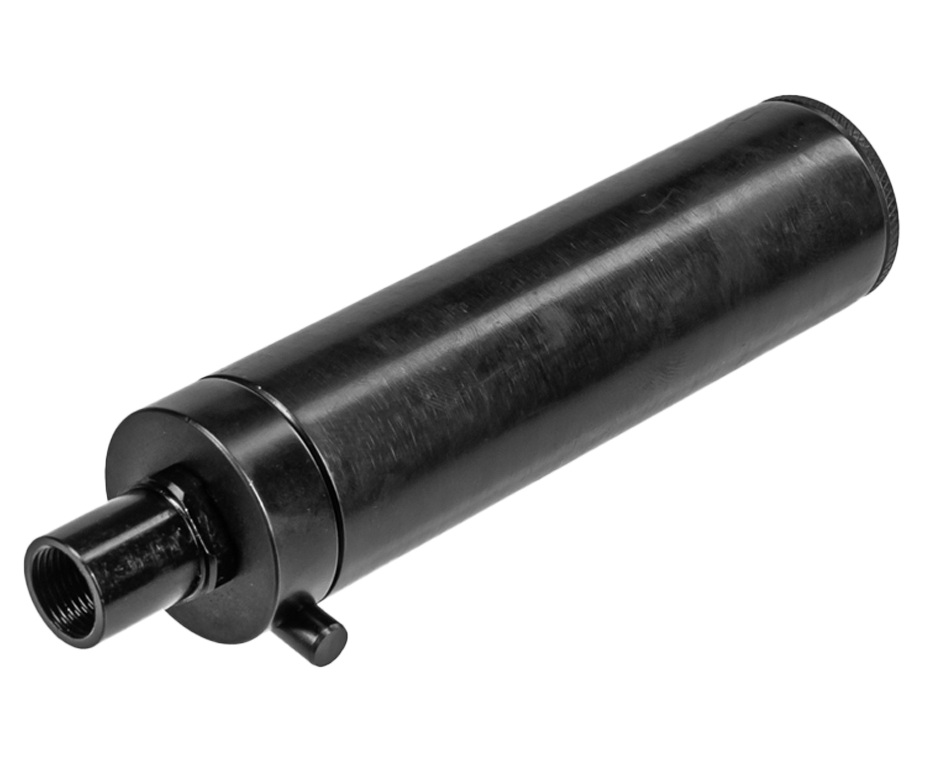 После выполнения отмеченной операции КрюгерГан модератор устанавливается одним движением и с аналогичной оперативностью снимается нажатием фиксатора - подобная схема существенно упрощает процедуру разборки оружия для перевозки и позволяет незамедлительно начать стрельбу после извлечения из чехла. В этом случае адаптер разработан для пневматических пистолетов Корсар калибра 6.35 миллиметра.
