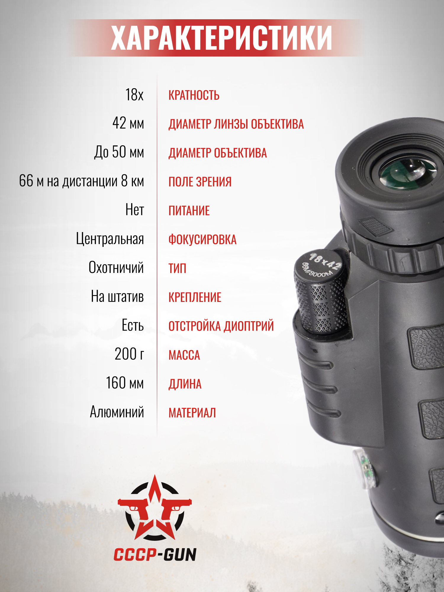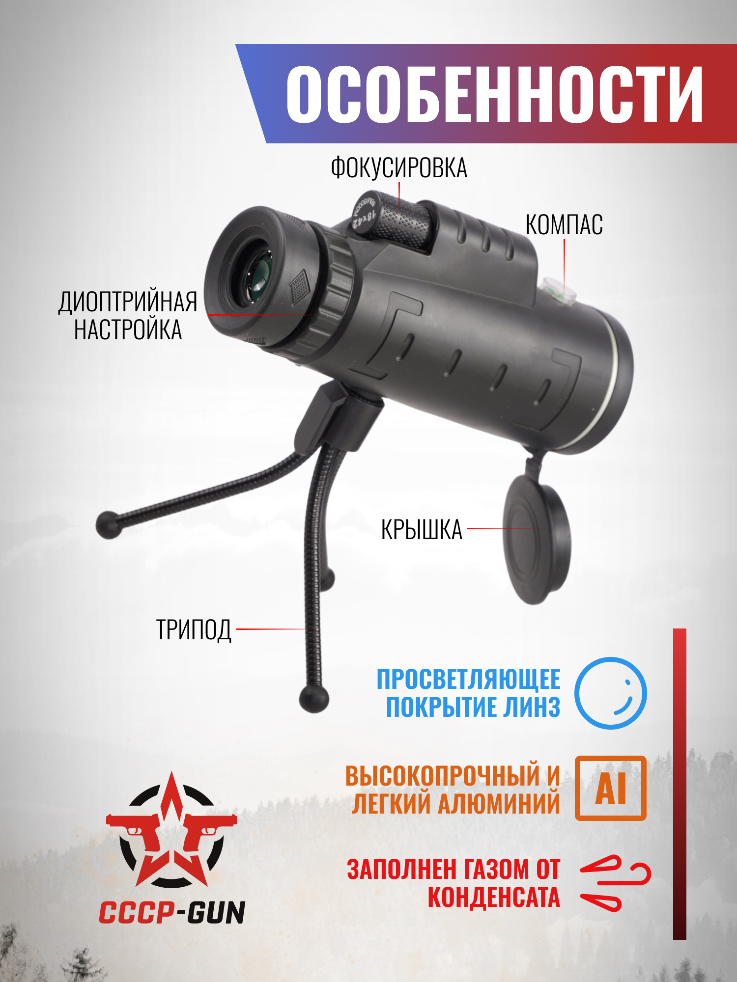 Монокуляр Kandar 18x42 (BH-MK184, компас, штатив)